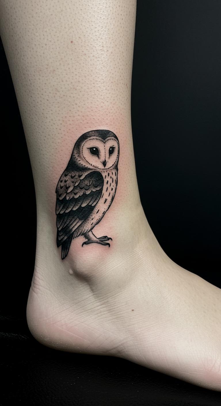 A nocturnal owl uses dark shades for night vibes. Ankle placement keeps it low-key. Shading is light. Sketch dark themes at home. Look at moonlit images. Find a cheap shadier. Dark ink is key. Keep it tiny. Heal with basics. Let it nod to evenings. Add shadows from drawings. It’s mysterious and cool.