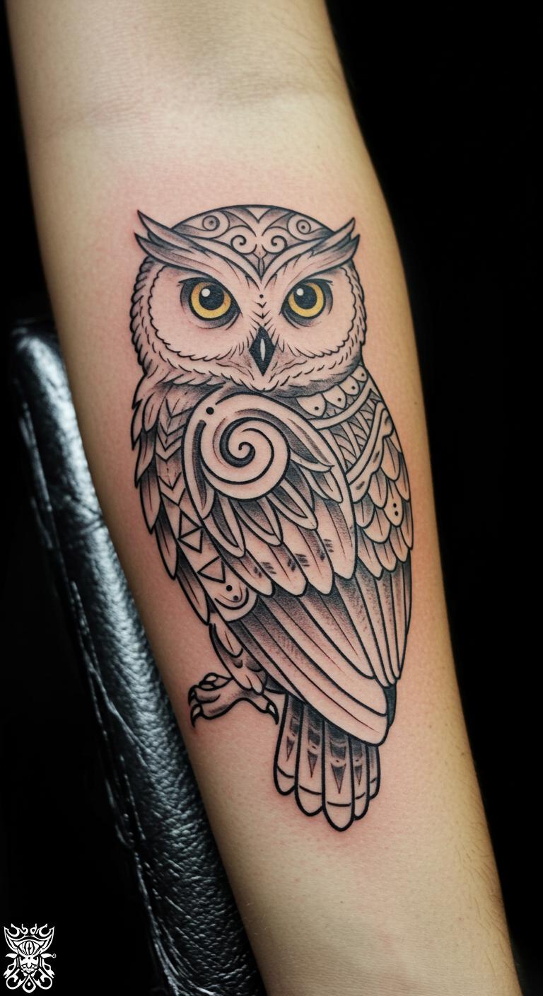 Cultural motifs in your owl honor traditions. Arm spot makes it visible. Simple patterns fit. Draw cultural symbols. Research respectfully online. Choose a fair artist. Basic lines save. Size for budget. Use common care. This design connects you. Personalize from studies. It’s respectful and meaningful.