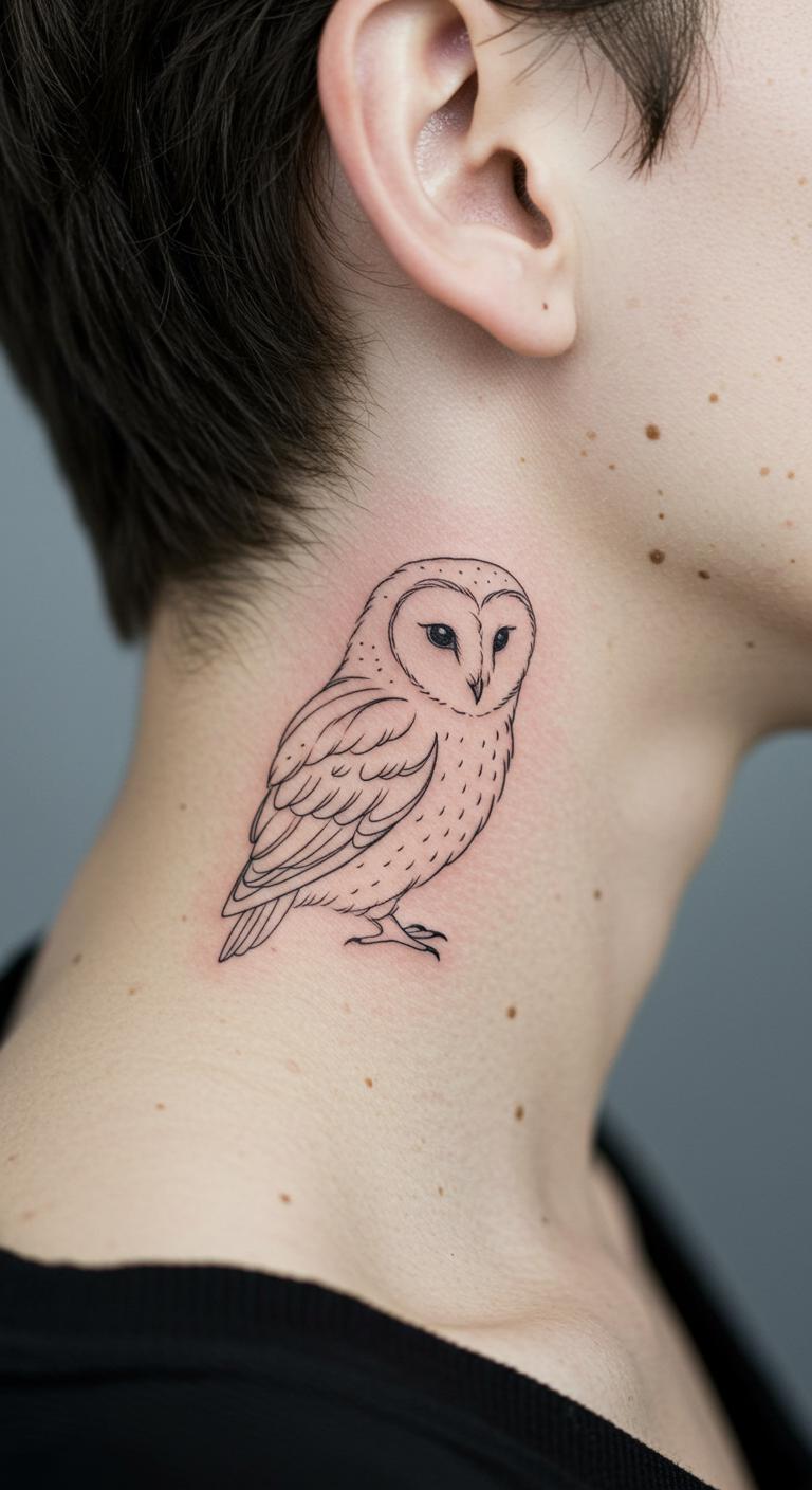 Fine lines create a delicate owl. Neck placement is elegant. Thin strokes fit. Sketch delicate designs. Look for fine art. Select a budget expert. Fine lines save. Small scale aids. Heal gently. Let it grace your look. Personalize lines. It’s refined and subtle.