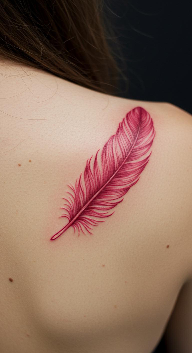 A red feather on your shoulder blade suggests freedom lightly. It fits under clothes when needed. Select the blade for a broad canvas. Feather sketches guide your choice. Find shoulder deals around $60. Try feather drawings with red pencils. Use flowing lines. Bold the key: red feather. Plan for two-week healing. Verify safe inks. Customize with feather details.