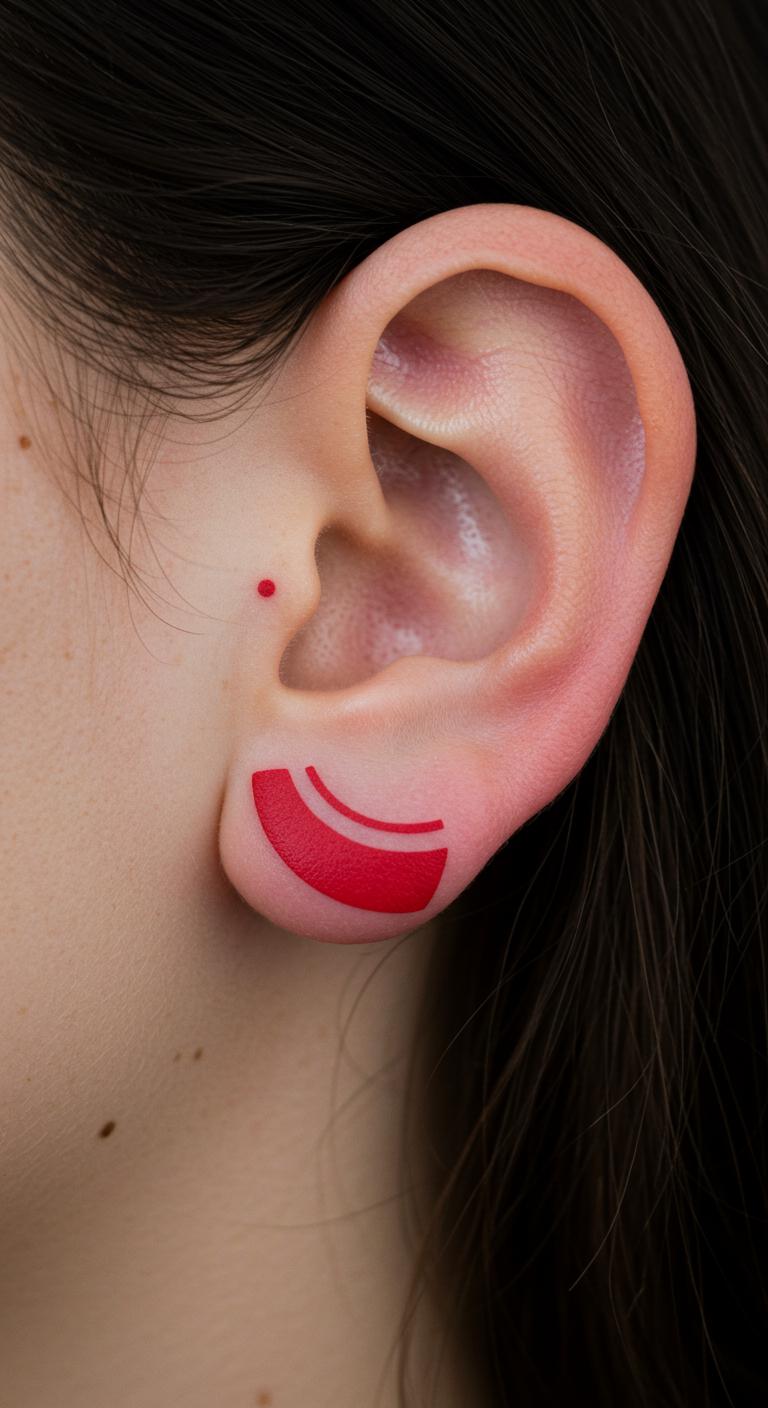 A red semi-circle on your ear lobe curves into style easily. It forms a half-moon effect. Pick the lobe for quick visibility. Semi-circle sketches refine the look. Artists price these at $45. Try with curved stickers. Use smooth curves. Bold the key: red semi-circle. Healing is fast, about a week. Check for safe choices. Personalize with a full circle option.