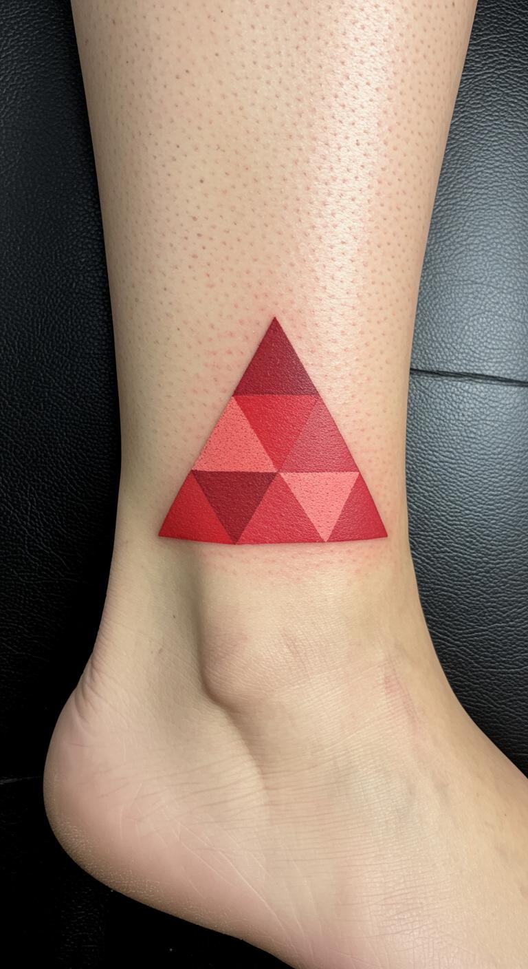 A red triangle on your ankle keeps things modern and sharp. It represents balance in a minimalist form. Pick an ankle for easy cover when needed. Sketch triangles on your skin with a red pen to experiment. Find affordable artists online who charge by the hour, around $50. Try drawing with washable ink for a home test. Use straight lines for impact. Bold the key: red triangle. Healing takes roughly a week if you keep it clean. Ask about vegan inks to stay safe. Make it unique with a small add-on, like a dot.