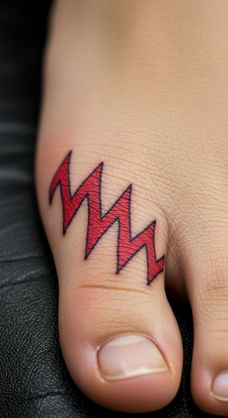 A red zigzag on your toe adds energy to steps. It patterns movement in a flash. Opt for the toe to keep it low-key. Zigzag sketches help visualize. Budget at $40 for toes. Try with zigzag tape. Make lines sharp. Bold the key: red zigzag. Healing takes a week. Inquire about safety. Customize with repeats.