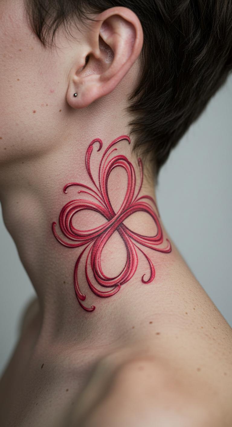 A red infinity on your neck side loops forever. It means endless bonds neatly. Choose the side for balance. Infinity sketches spark ideas. Artists price at $50. Try with infinity bands. Use smooth loops. Bold the key: red infinity. Healing is quick. Discuss tests. Personalize with a knot.