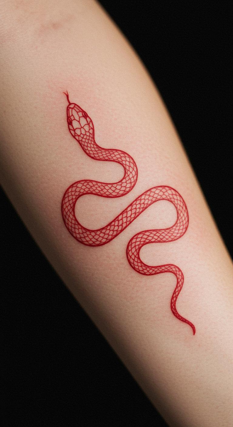 A red snake on your forearm brings mystery with minimal lines. It stands for transformation in a sleek design. Opt for a forearm to show it off or hide it. Draw snake shapes on paper to get the flow right. Look for walk-in sessions that cost less than $70. Practice with temporary stickers for a quick try. Keep the design slim for discretion. Bold the key: red snake. It heals in about two weeks with simple routines. Discuss allergy checks before you go. Add a personal element, like a tail twist.