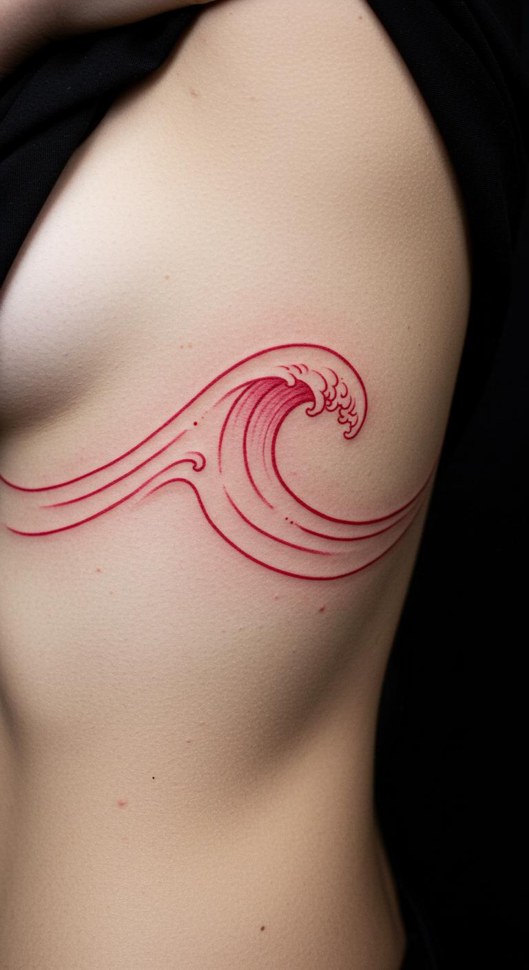 A red wave on your rib captures motion with minimal effort. It reflects flow in a hidden spot. Choose the rib for privacy when wanted. Wave your hand to draw ideas on paper. Budget with sessions that bundle designs for $65. Use water-based markers for home experiments. Make waves gentle for comfort. Bold the key: red wave. Expect two-week healing if cared for. Discuss pigment tests in advance. Personalize with multiple waves.