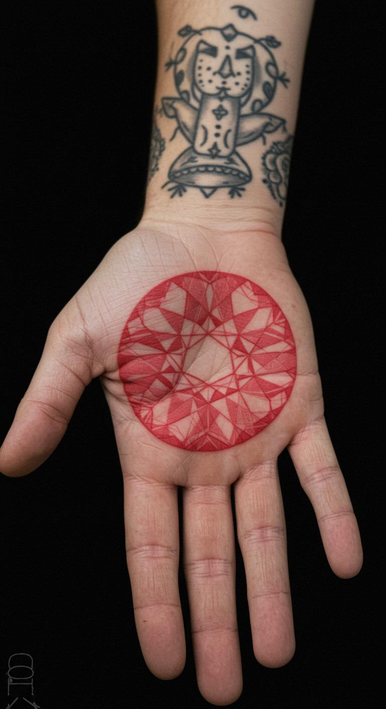 A red circle on your palm stands for unity in a basic form. It fits daily routines perfectly. Opt for the palm to feel it often. Trace circles on your hand to visualize. Find palm tattoos at affordable rates, about $45. Practice with ring stamps for a DIY feel. Use one clean line. Bold the key: red circle. Healing takes a week with gentle use. Check for safe inks first. Add a dot inside for flair.