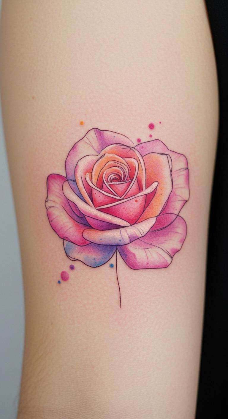 Watercolor roses offer a painted feel. Envision faint blends of color on your thigh. It looks artistic and free. Try watercolor paints on paper first. Practice light strokes. Find sales at shops for $80. Artists use washable techniques. Go light on colors for ease. Heal by keeping it dry. This design lets your confidence flow.