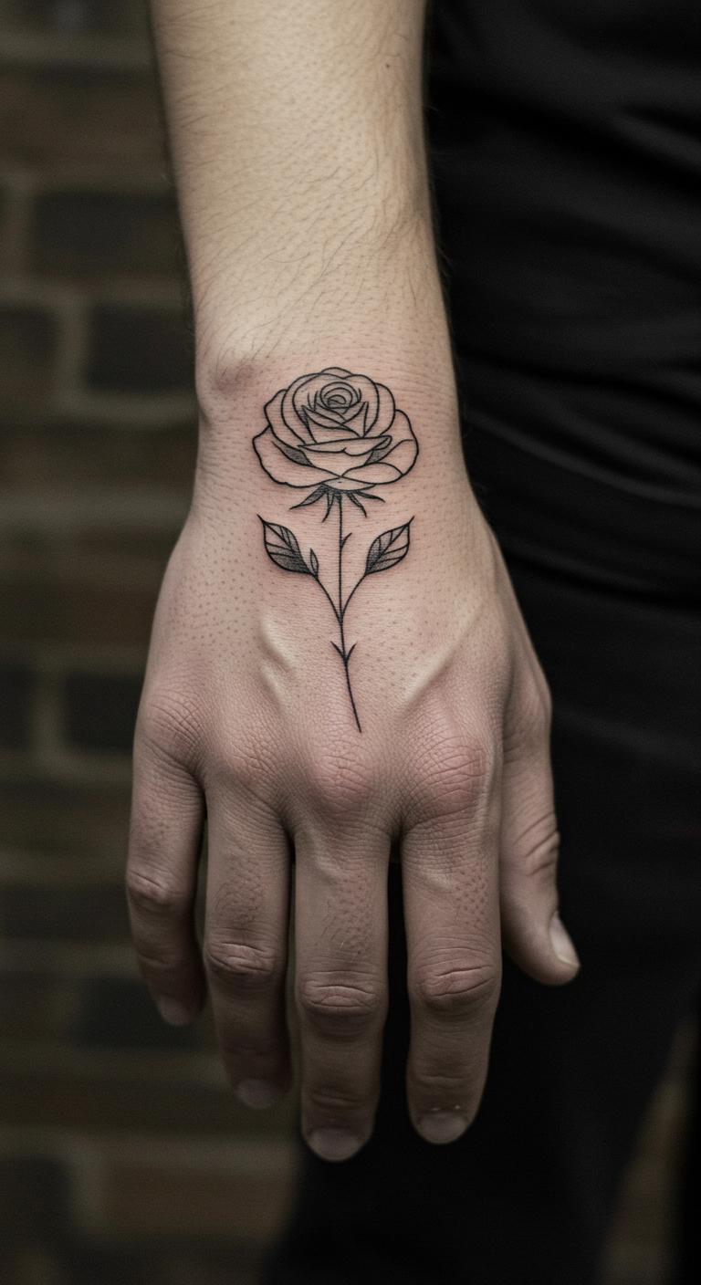 Hand roses add grace to your grip. Think of elegant lines across your palm. It feels practical and pretty. Trace your hand with a pencil. Add rose details slowly. Artists charge $60 for hand work. They focus on steady lines. Choose areas with less movement. Aftercare includes hand cream. This tattoo enhances your daily confidence.