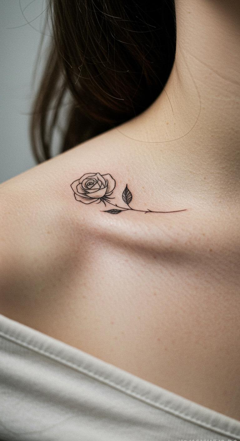 Collarbone roses whisper elegance. Imagine slim lines along the bone. It stays subtle and chic. Draw on your collar with a soft pencil. Adjust for symmetry. Look for $50 sessions locally. Artists use fine needles. Pick black for simplicity. Heal with loose clothing. This spot boosts your poise.