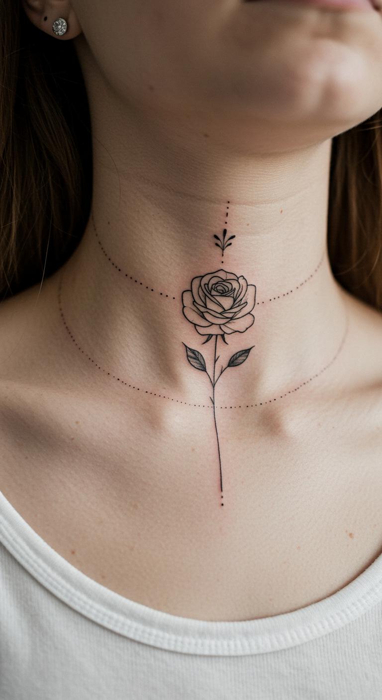 Neckline roses accent your profile. Think of fine lines at your nape. It adds a sharp edge. Sketch near your neck with care. Avoid smudges. Look for $60 options. Artists use light touches. Pick small sizes. Heal with scarfs. This design accents your confidence.