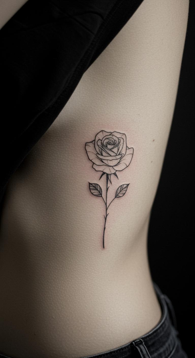 Ribcage roses hide like gems. See delicate lines on your side. It feels intimate and bold. Draw on your ribs with a soft tool. Check for comfort. Artists offer this at $90. They work carefully. Choose breathable spots. Care means loose fits. This tattoo gems your inner confidence.
