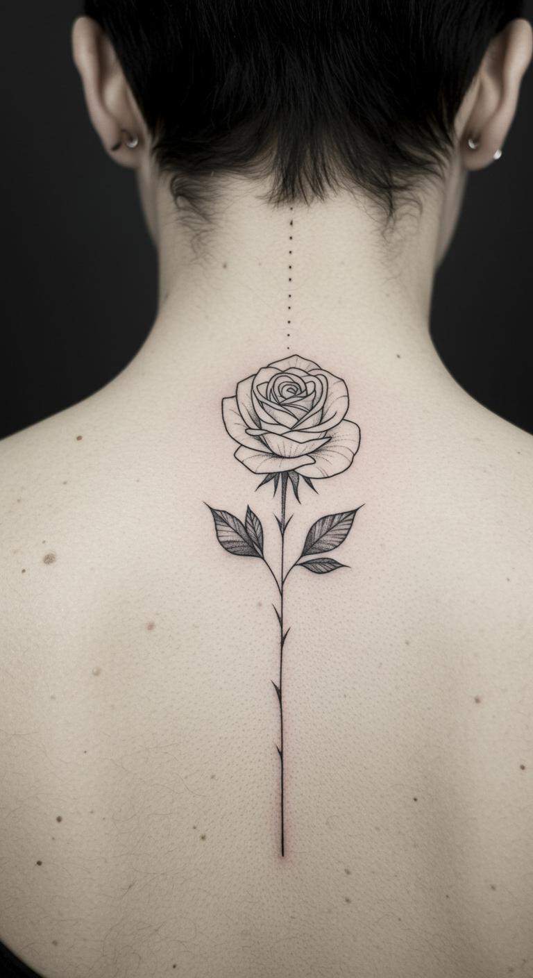 Spine roses align your path. Picture vertical lines down your back. It feels centered and strong. Sketch along your spine at home. Use a straight line. Artists charge $100 for precision. They follow the curve. Choose meaningful spots. Care involves posture. This design aligns your confidence.