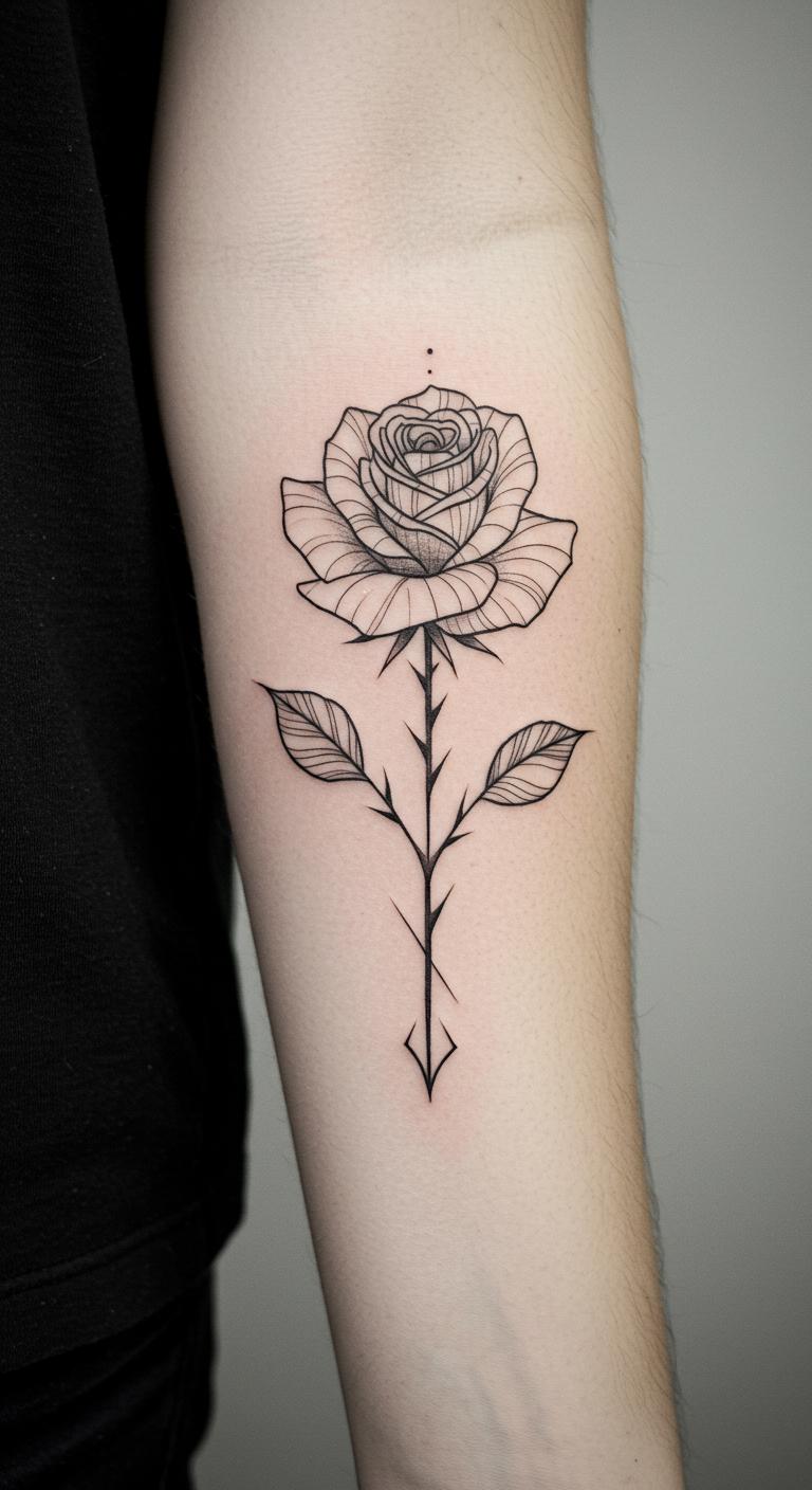 Forearm roses streamline your look. Picture long lines down your arm. It shows strength clearly. Draw along your arm with a straight edge. Refine the flow. Find artists at $70 rates. They use precise methods. Choose visible spots. Healing means sleeve use. This design arms you with confidence.