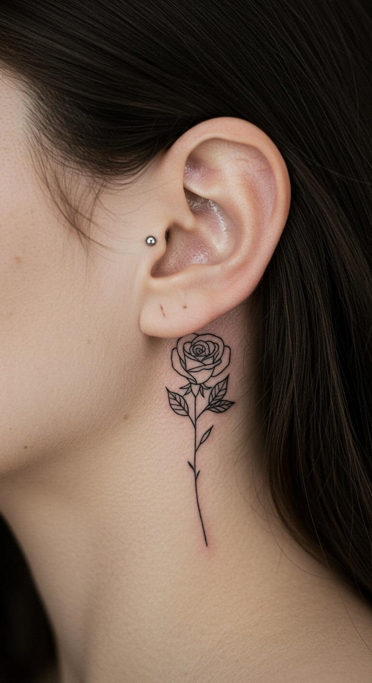Behind the ear, a rose tattoo stays hidden until you want to share. Envision faint lines of a rose tucked away. It feels mysterious and empowering. Sketch it on your skin with a washable pen. Adjust the angle for the best fit. Search for local shops with rates starting at $50. Artists often use gentle needles for this area. Go with a simple black design to keep costs low. The spot heals fast, so rest easy. Use a clean cloth to dab the area daily. This placement lets you feel confident in professional settings or casual outings.