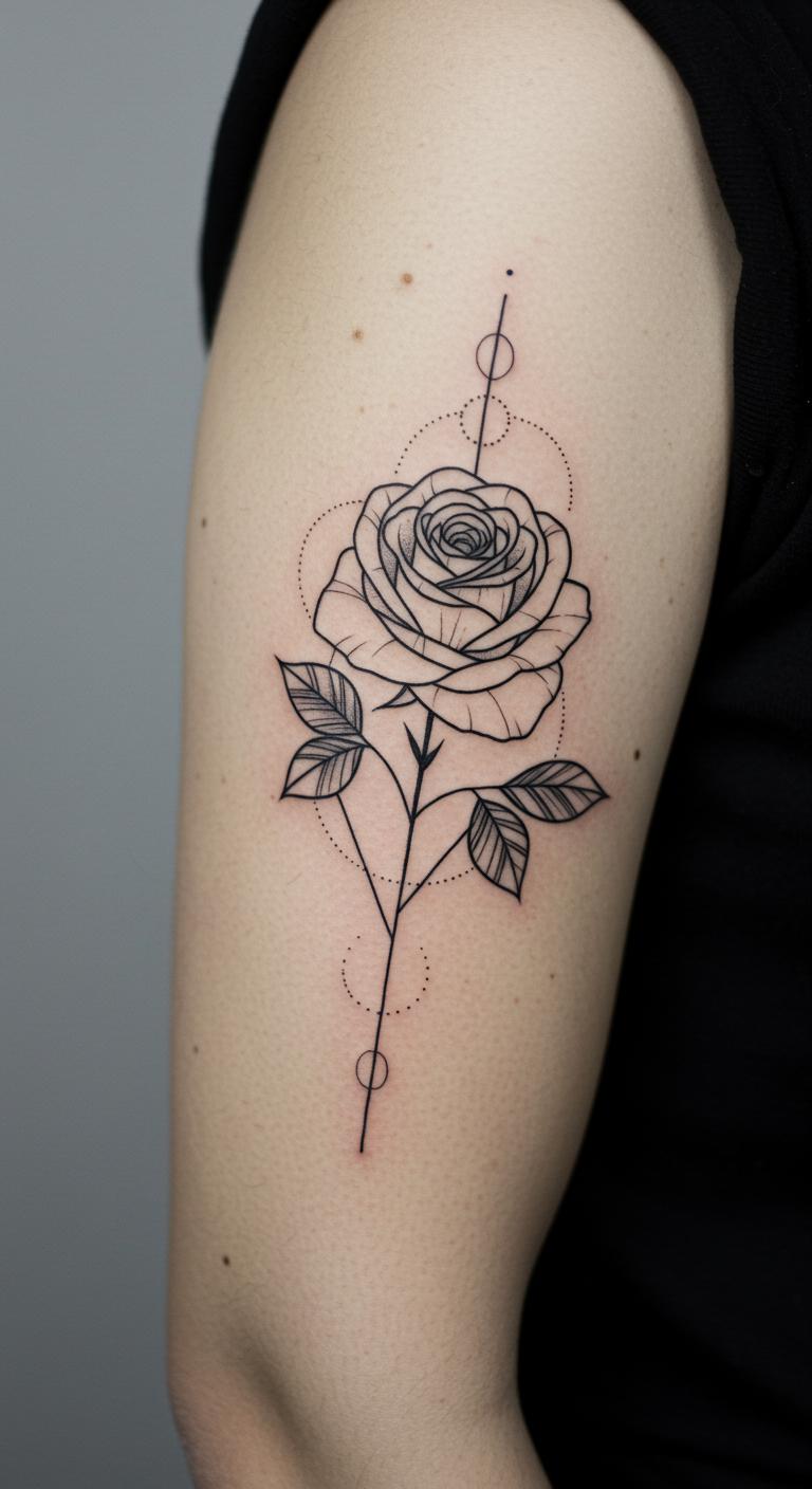 Geometric roses add shapes for a modern edge. Picture a rose with triangle lines on your side. It feels structured and cool. Use a ruler to sketch grids at home. Experiment on scrap paper. Artists offer this for around $50. They employ basic geometric tools. Opt for simple lines to save. Care means gentle washing daily. This tattoo gives you a sense of balance.