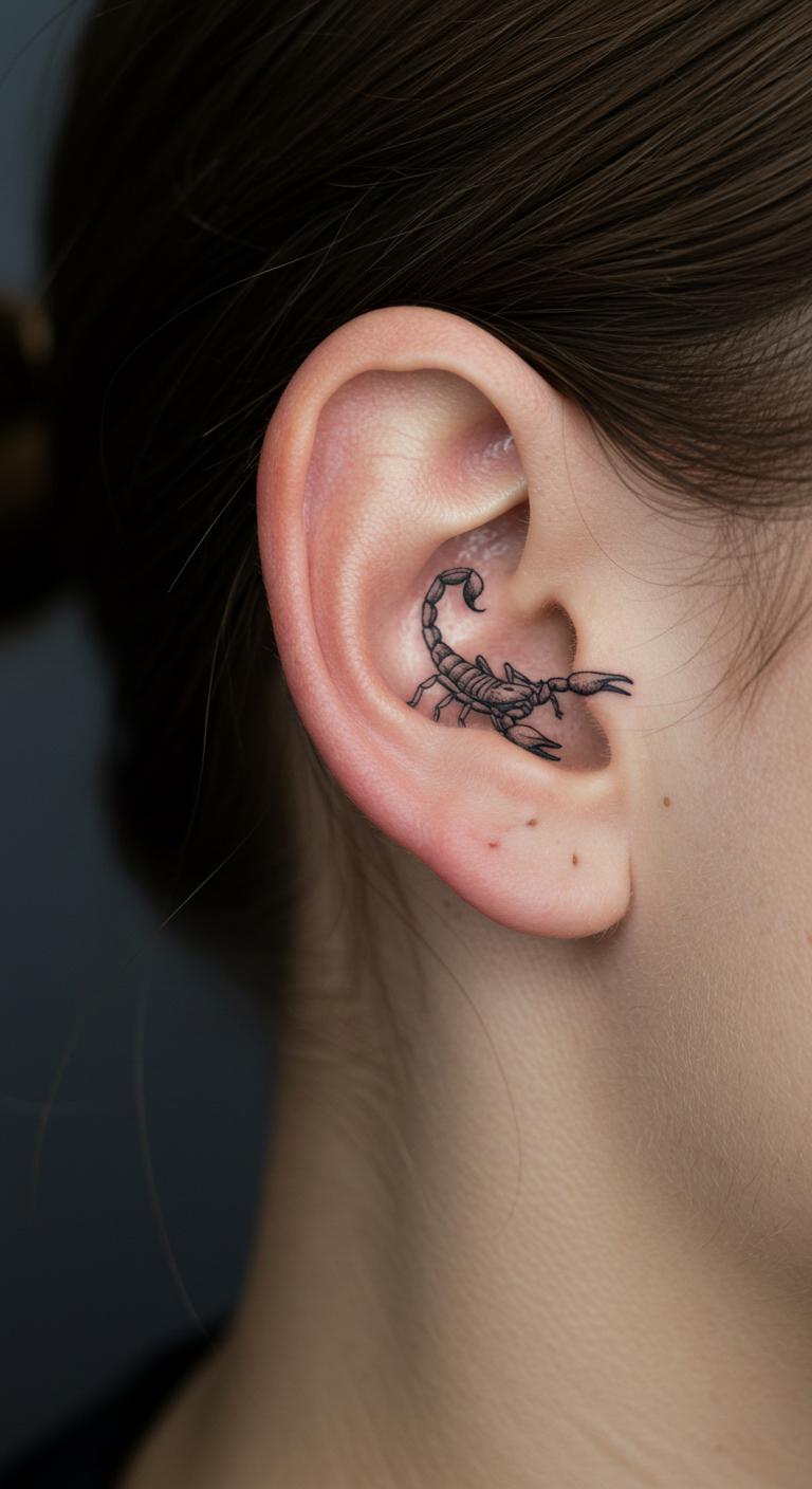 Tuck it behind your ear for a secret touch. A simple scorpion fits perfectly. Cover it with hair when needed. Check for flash tattoos online at low prices, around $50. Use temporary tattoos at home to preview. Add a tiny element like a wave. This spot reminds you of your depth. Step out with added assurance.
