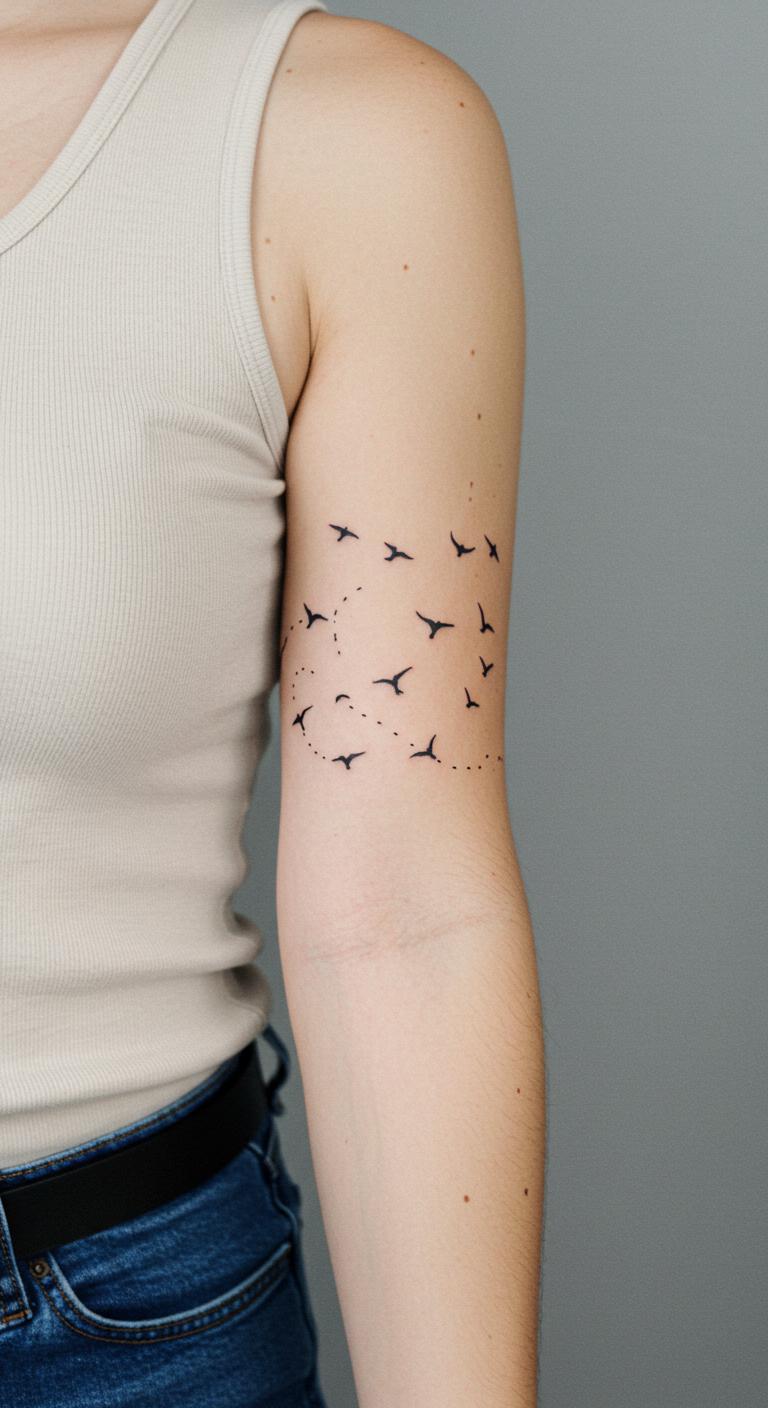 Bird paths trace journeys across your sleeve. Dots show the way simply. Map paths on paper with a pencil. Apps with path features are free to use. Mark your arm with removable ink. This step ensures the design fits. Opt for light dotting for subtlety. Budget artists often handle animal motifs cheaply. Birds mean adventure, so add a destination point. The tattoo inspires daily.