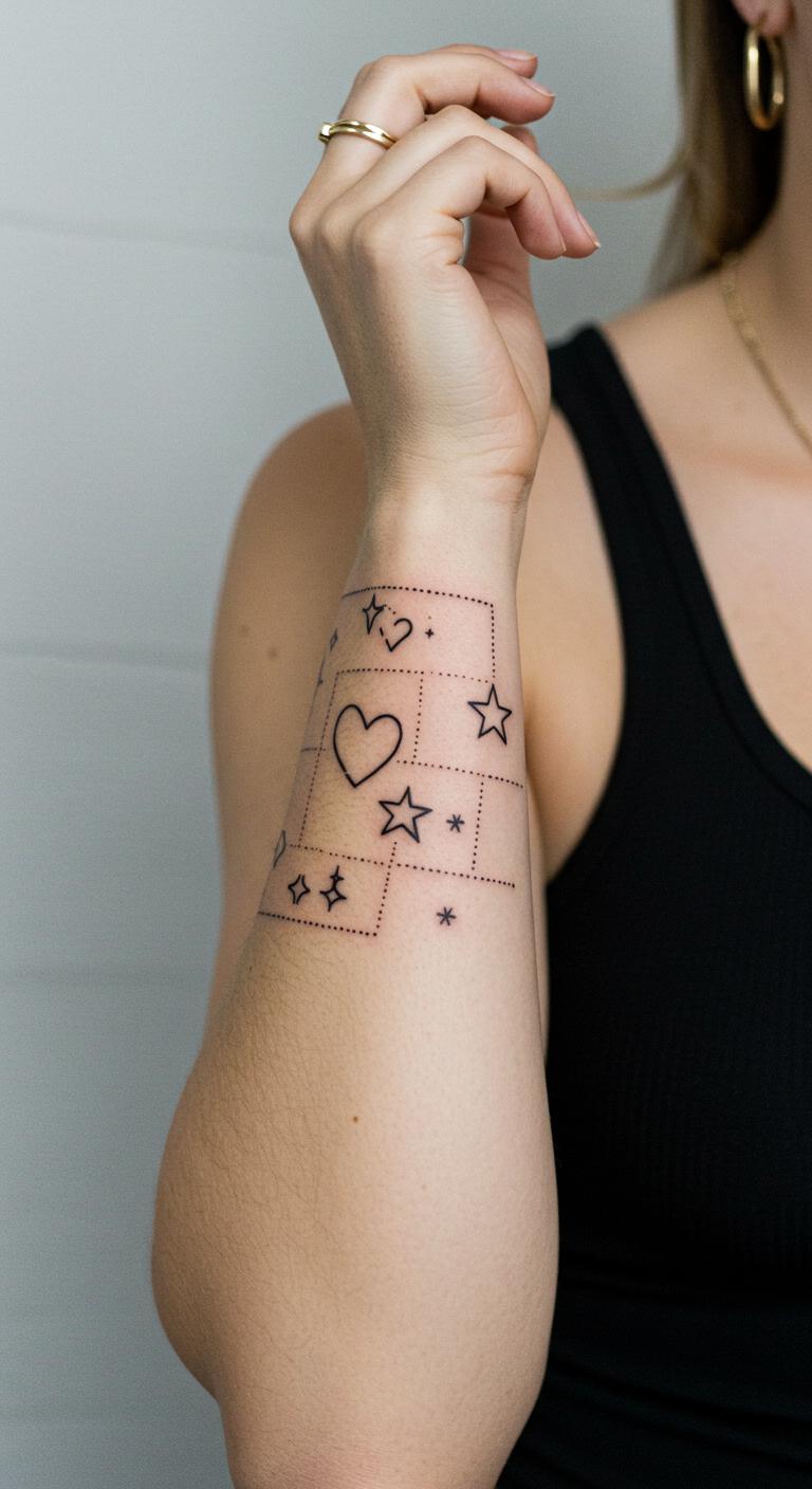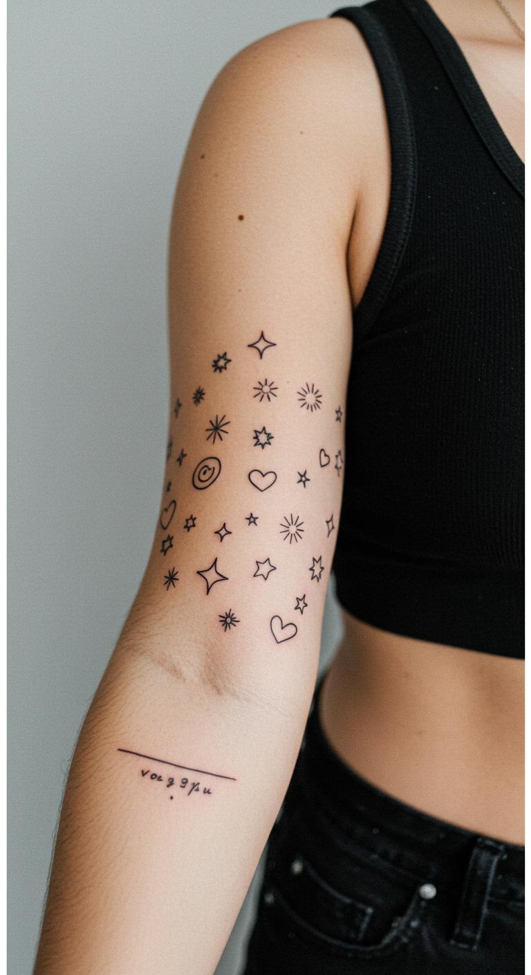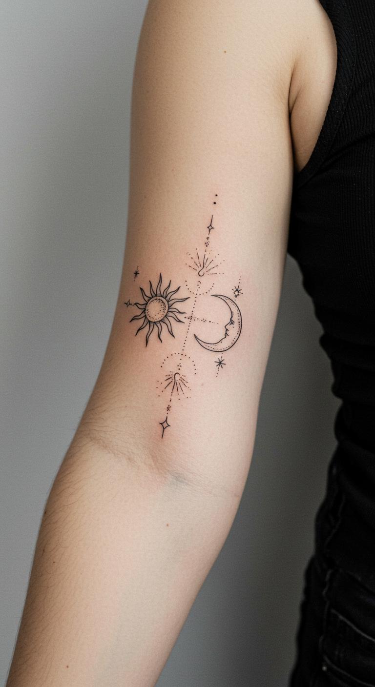 Stars and moons bring a cosmic vibe to your arm. Use dots or lines for planets and phases. It creates a narrative of night and day. Start by mapping out key elements on your skin with washable markers. Save money with apps that let you overlay designs virtually. Try different placements to find your favorite. This DIY step avoids extra fees. Focus on small details like a single star cluster. Once set, a quick session at a budget studio works. These tattoos age well with simple care. Keep it meaningful by adding a symbol that matters to you.