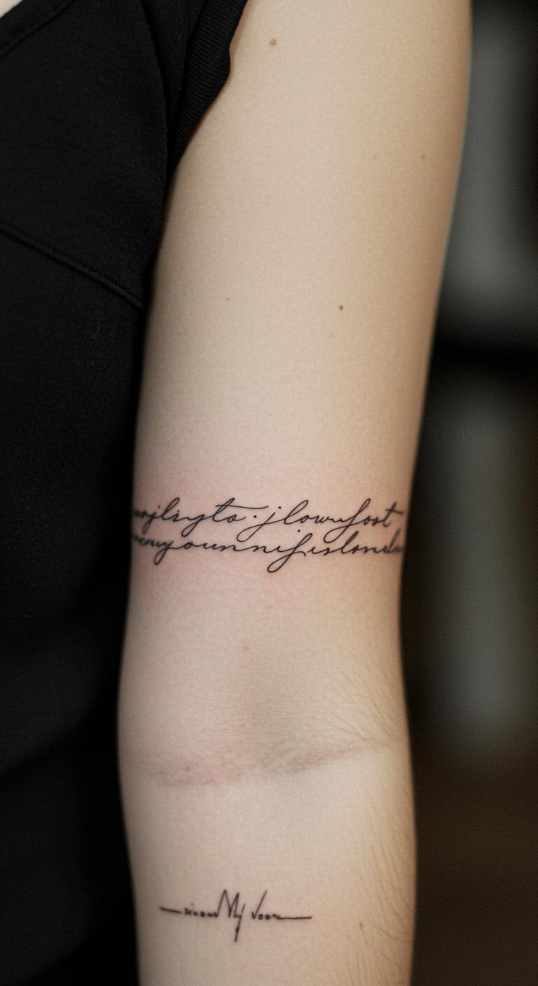 Words in fine lines add text to your sleeve. They share messages clearly. Write scripts on paper to perfect. Free font apps provide options. Tape words to your arm for fit. This method ensures clarity upfront. Choose readable fonts. Budget sessions focus on text work. Scripts hold personal quotes, making them special. The design speaks for itself.