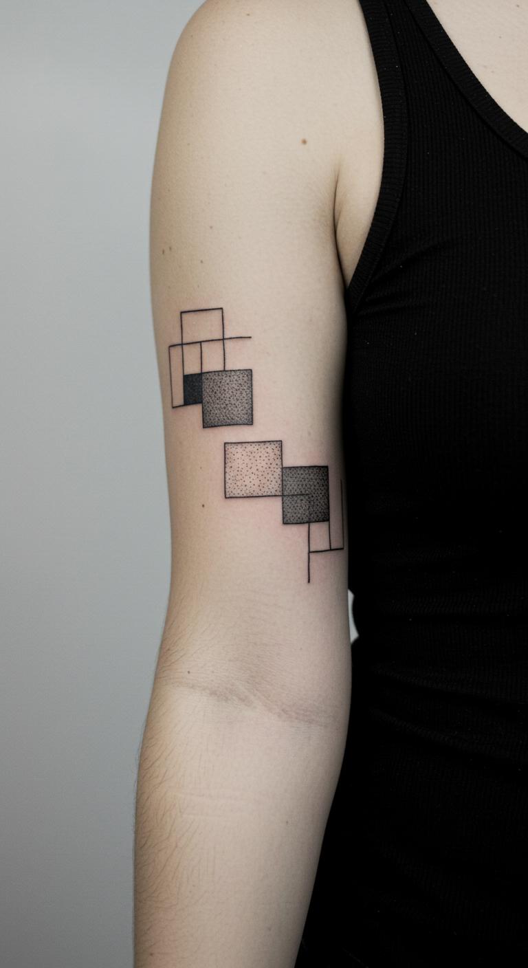 Black blocks create bold yet minimal elements. They stand out with solid ink. Block out areas on paper first. Free grid apps help plan. Use markers to test on your arm. This step keeps things straightforward and cheap. Layer carefully for depth. Look for blackwork specials at studios. Elements can symbolize strength. The tattoo makes a statement.