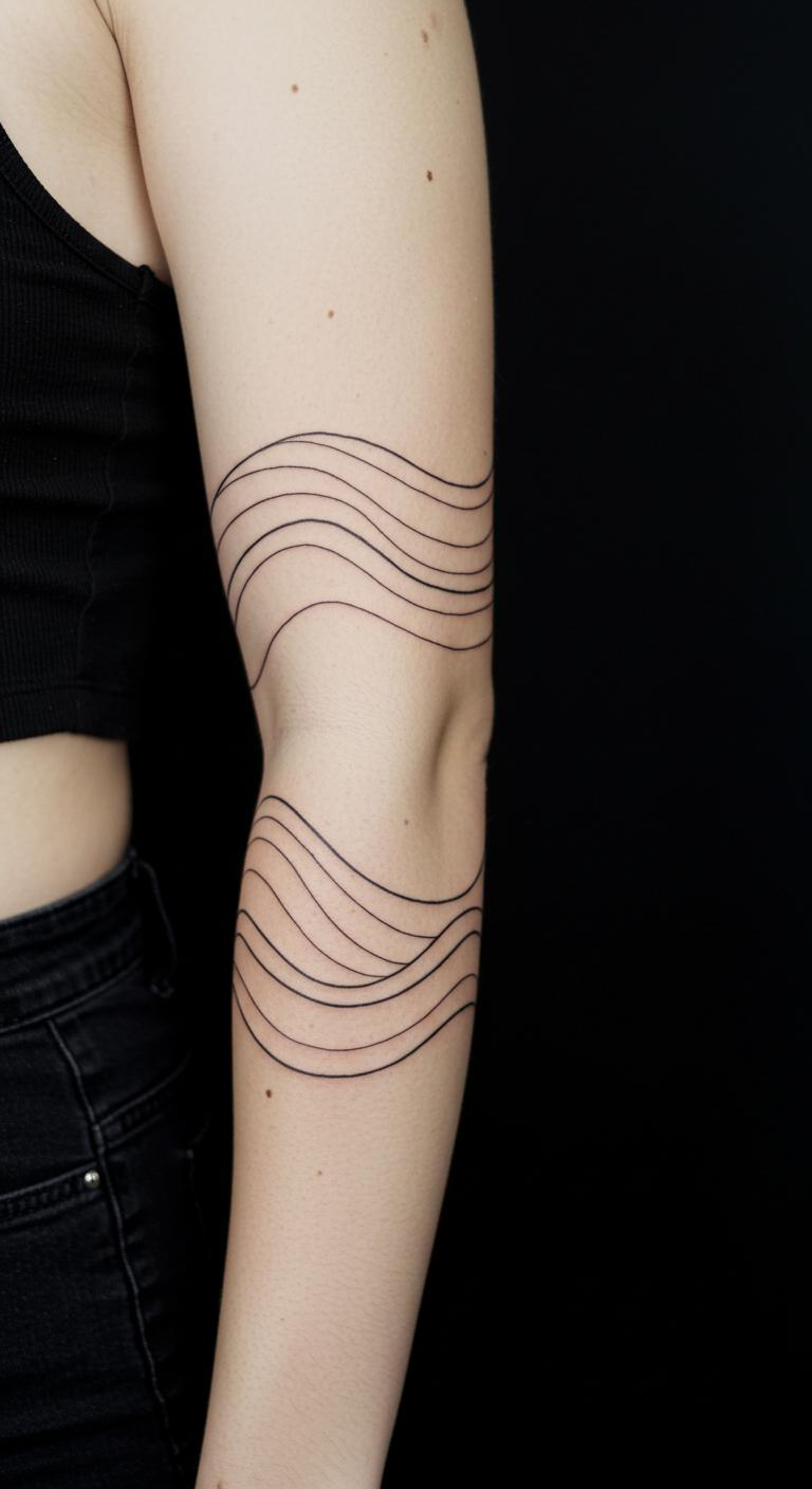 Waves offer a serene, flowing design for your arm. Use curved lines to mimic the sea. It evokes peace with minimal effort. Draw waves on paper first to get the motion right. Download free wave templates online for tracing. Apply them with temporary tattoos to test. This approach saves time and money upfront. Stick to one color for that clean look. Check for affordable artists who specialize in line work. Waves pair well with other elements, like a small anchor. Make it your own by adjusting the curves.
