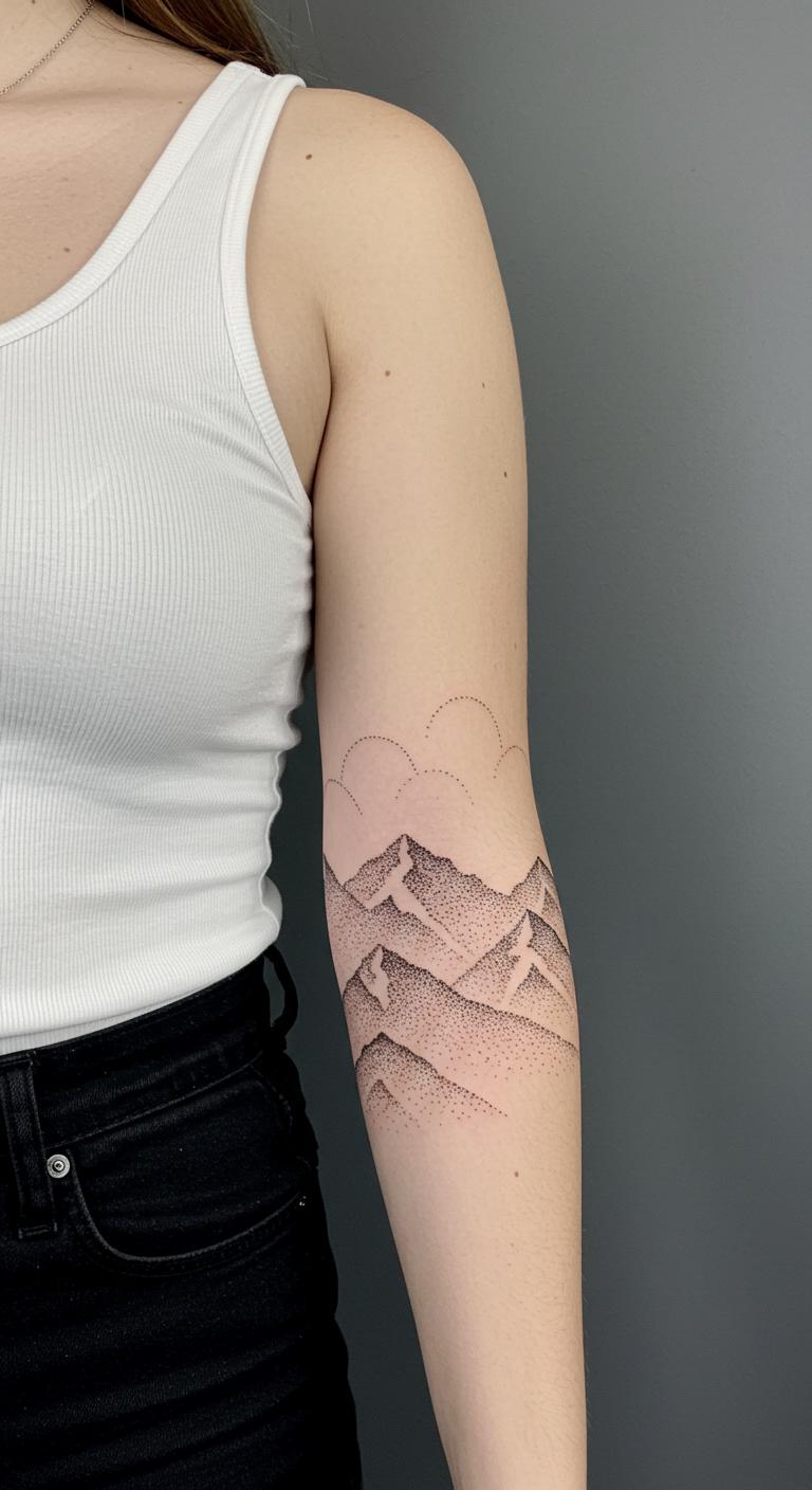 Dots form mountains for a rugged yet simple sleeve. They build texture without heavy shading. Start by plotting dots on grid paper at home. Use phone apps with dot tools for free planning. Place stickers on your arm to visualize. This method keeps things low-cost and fun. Focus on patterns that rise along your arm. Look for studios with introductory rates for dot styles. Mountains symbolize strength, so add a personal twist. Care is easy—just moisturize regularly.