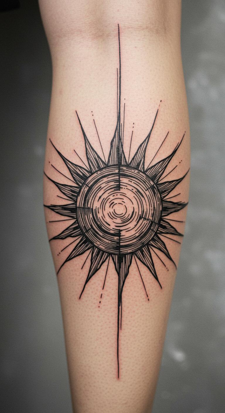Abstract suns use irregular lines for a modern edge. They break from tradition with fun shapes. Use free apps to design yours. Practice on paper with simple strokes. Build piece by piece. Affordable for small versions. Try abstract stickers first. Place on your calf for style. Customize the shapes. This keeps it fresh.