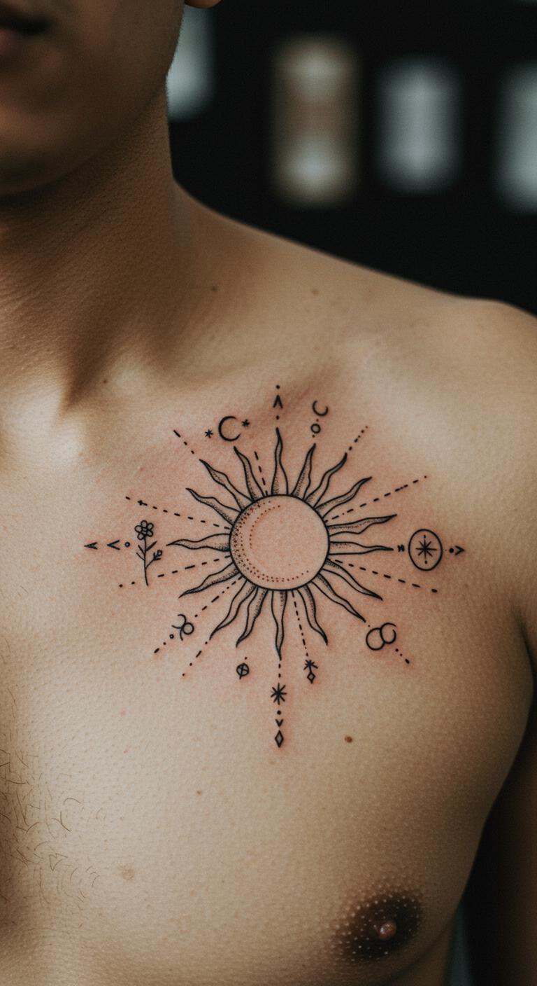 Customized suns add elements like stars for flair. They make the design your own. Find free customization ideas online. Sketch additions on paper. Add one element at a time. Budget-friendly with simple extras. Use custom temporaries. Spot like your chest works well. Make it meaningful. This personalizes your ink.