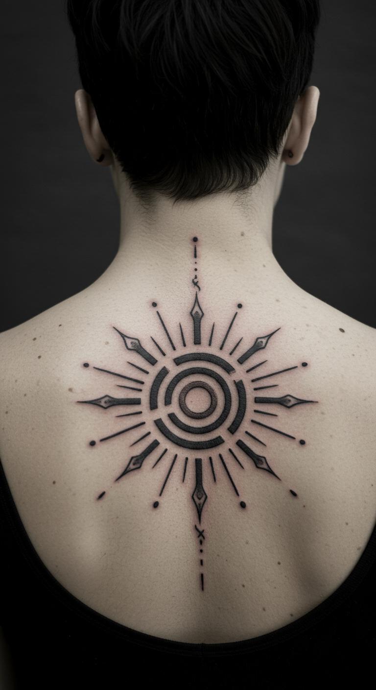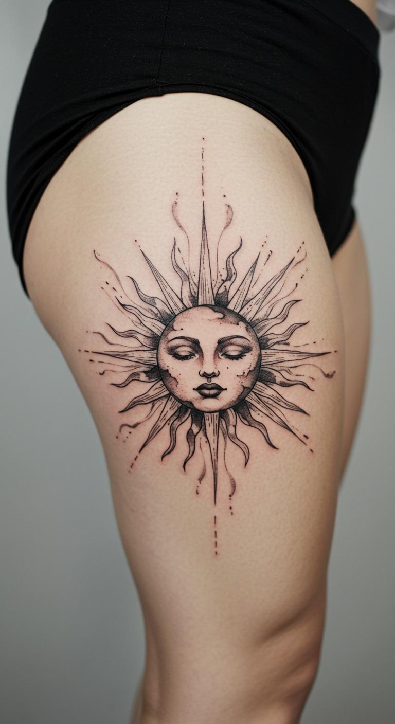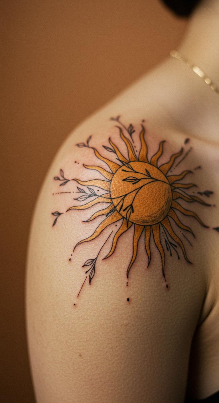 Cultural sun tattoos pull from global traditions for deeper meaning. They feature basic shapes tied to history. Research online for free inspiration from various cultures. Draw a simple version on paper to start. Use affordable stencils from craft stores. Build it step by step: add cultural elements like triangles. Aim for a shoulder spot to keep it discreet. A budget artist could do this for around $60. Try a wash-off tattoo to preview. Respect the origins by keeping it authentic. This design adds personal depth. Combine with other symbols for a story.