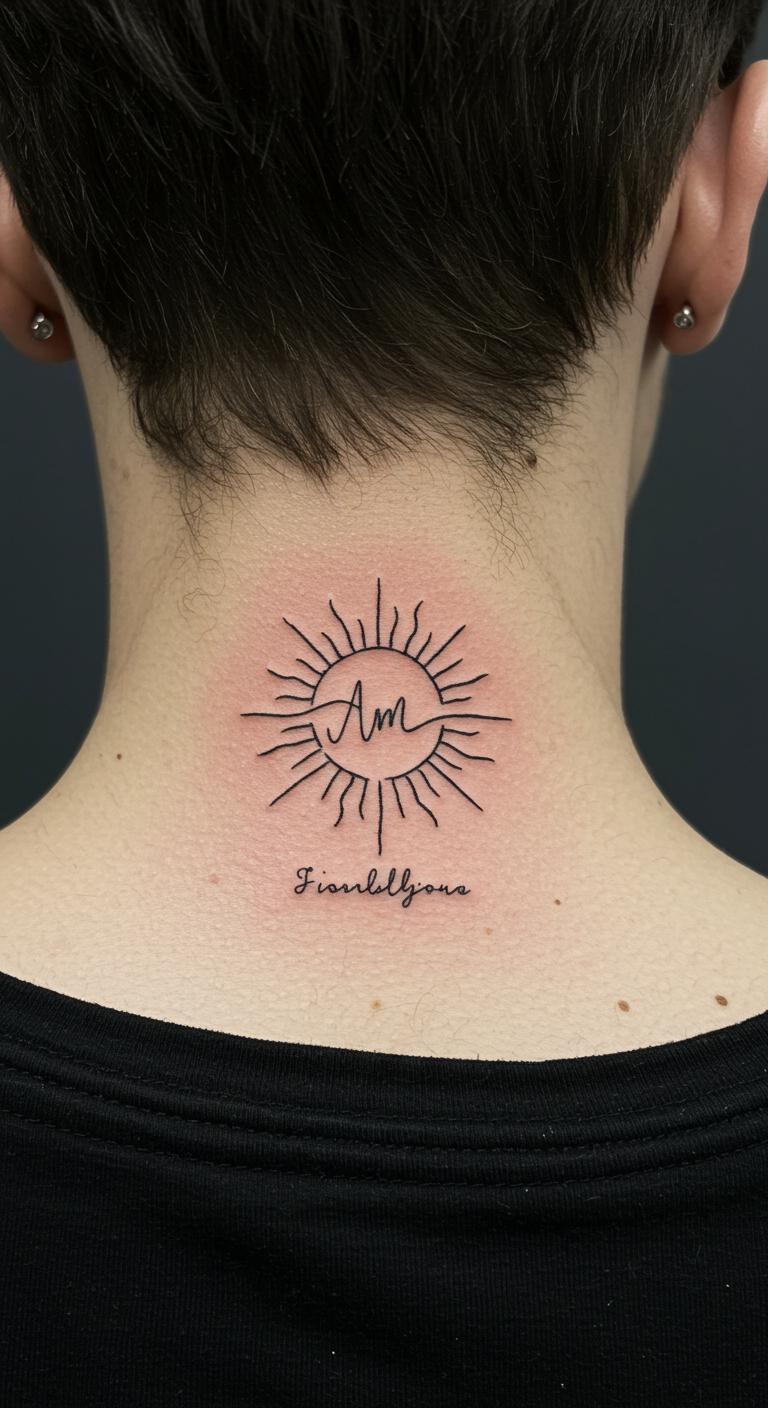 Add your name to a sun tattoo for a custom touch. It integrates text into the rays or center. Use a free app to write your name and draw the sun. Keep it simple to lower costs. Sketch in parts: sun first, name next. A small design might cost $50. Try temporary tattoos with custom prints. Put it on your collarbone for style points. Include a date for more meaning. This makes it truly yours. Practice with stickers before committing.