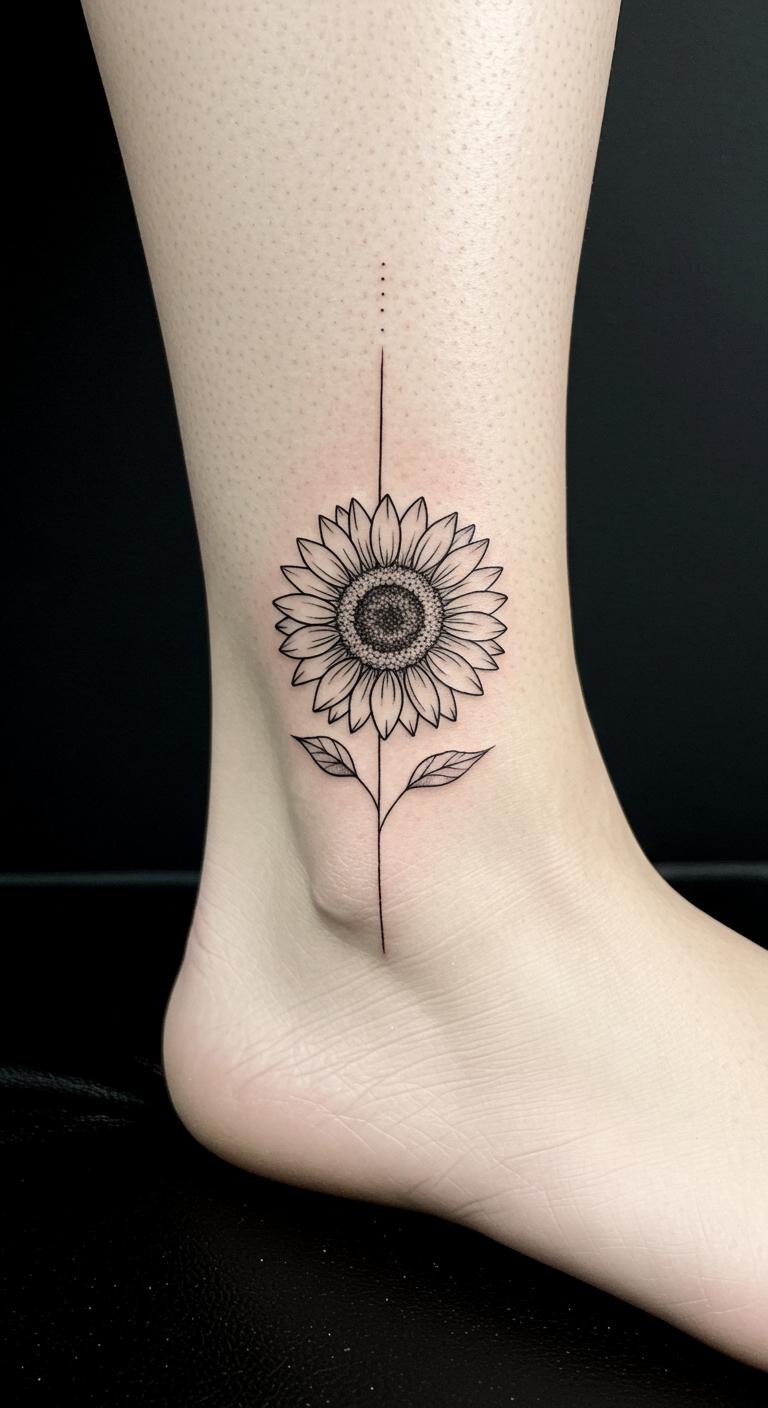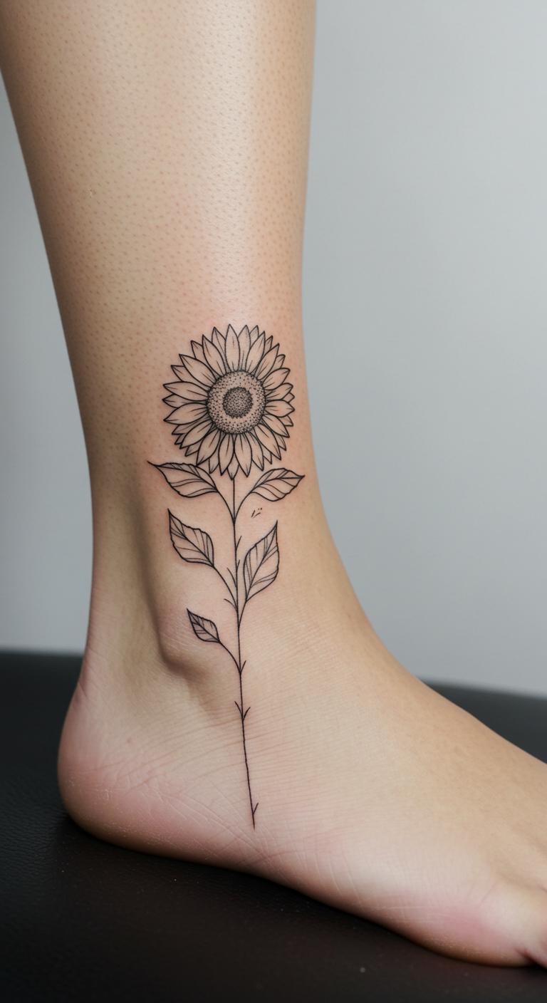 Pair your sunflower with leaves on the ankle. It adds a nature feel that’s easy to love. Draw leaves and the flower on paper to start. Keep everything streamlined. Check for affordable packages online, around $60. Position it on your ankle for versatility. Experiment by adding leaves with colored pencils at home. This helps refine your vision. The design grows with you. Use stickers to preview before committing. You’ll keep expenses low and fun high.