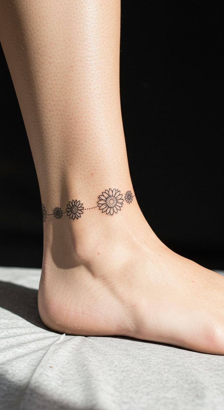 Create a chain of sunflowers for a flowing look. It’s playful and connected. Link small flowers in your sketch. Use basic tools. Find chain designs at affordable shops, about $80. Wrap it around your ankle. Practice linking with string and paper. This keeps costs down. The design tells a story. Test with chain drawings.