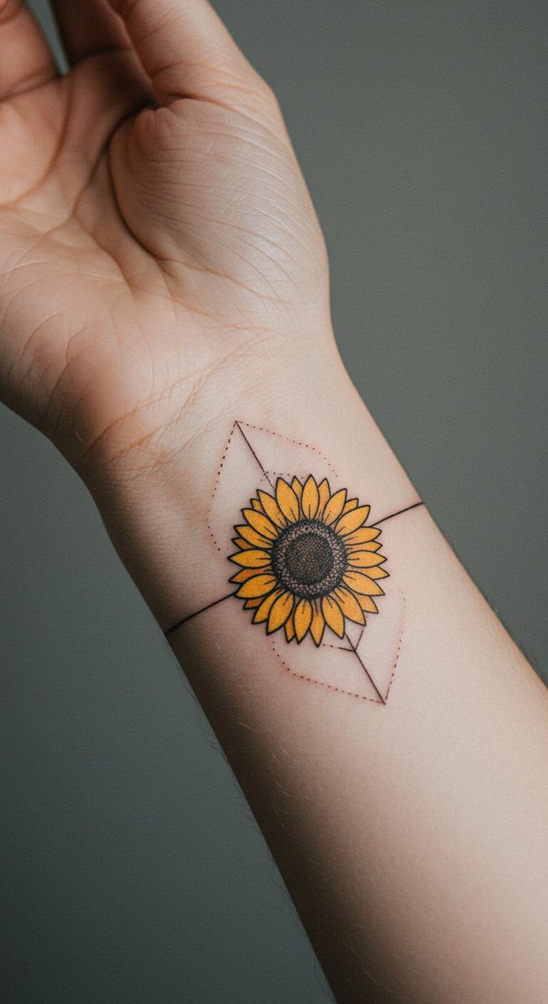 Incorporate geometric shapes into your sunflower. It adds a modern edge. Combine shapes in your drawing. Keep it geometric. Seek artists with geometric styles for under $70. Place it on your wrist. Use rulers for accurate sketches at home. This is budget-friendly. The design is unique and clear. Try different shapes first.