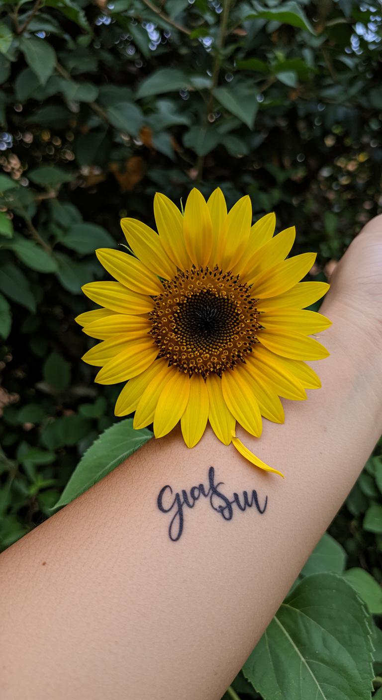 Add a personal twist to your sunflower. It makes it truly yours. Include a special element in your drawing. Be creative. Look for custom options at $70. Place on your arm. Sketch twists with personal items. This keeps it cheap. The result reflects you.