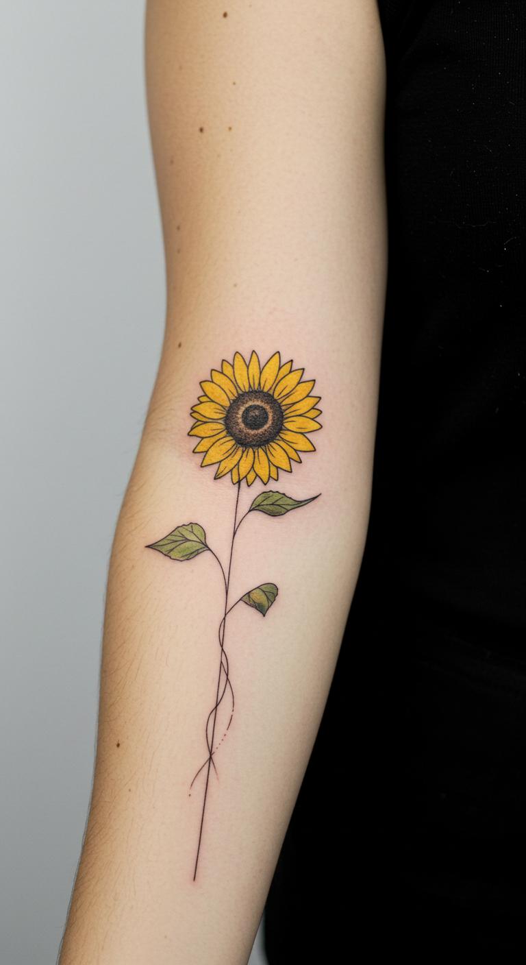 Show growth with an arm sunflower. It’s progressive and clear. Extend lines in your sketch. Make it reach. Look for growth designs at $70. Position on your arm. Draw extensions with tools. Keep expenses low. The tattoo evolves with you.