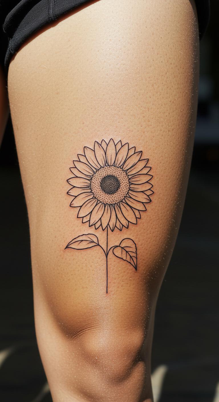 Hide a sunflower on your leg for personal significance. It stays private until you share. Sketch it on your leg with washable ink. Aim for a compact form. Check for discreet sessions costing $50 or so. This area offers good coverage. Add details using free drawing software. It’s a practical choice. Test with stick-on versions first. Keep it simple and meaningful.