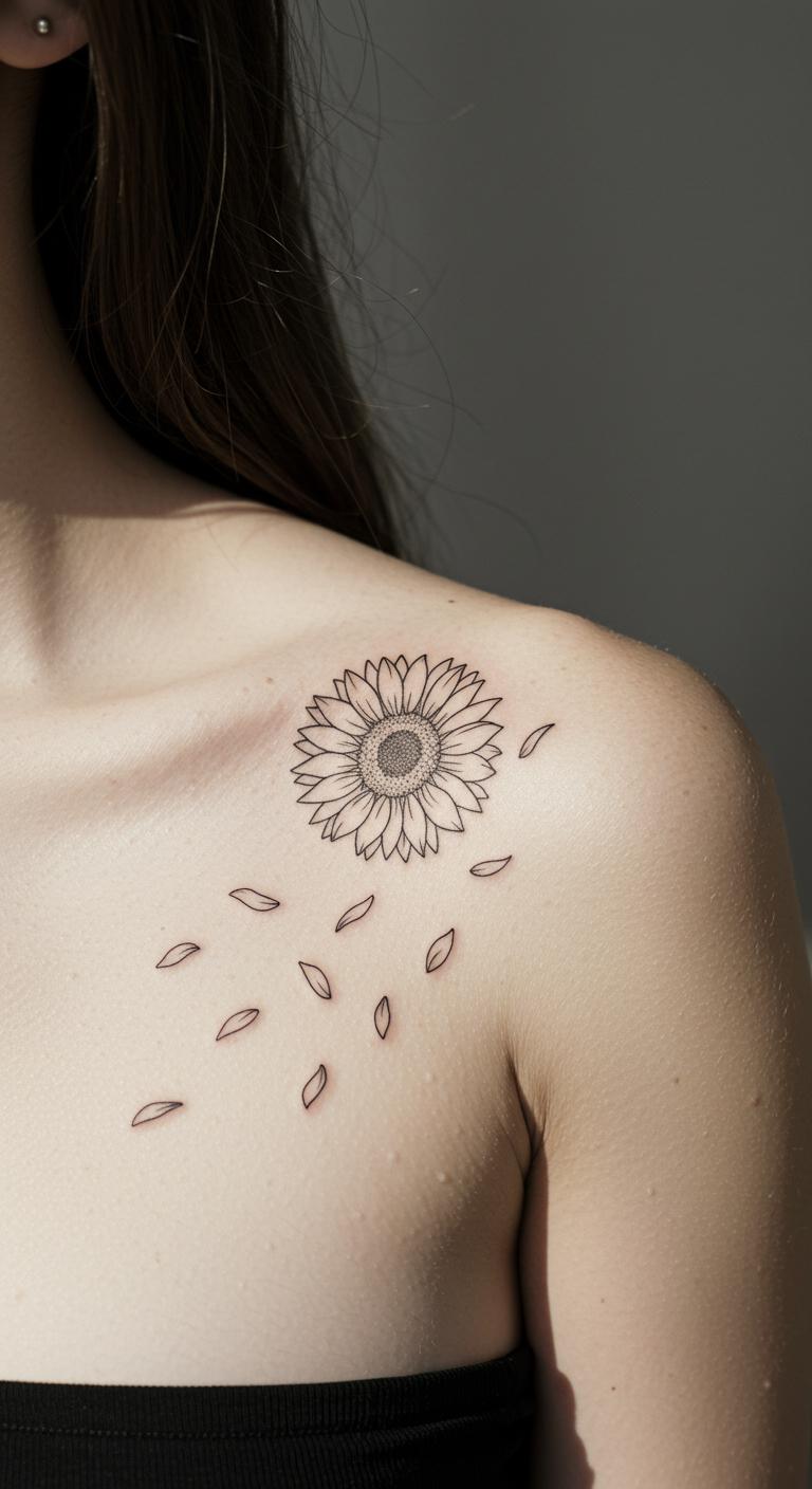Add falling petals to your sunflower for a story of change. It represents new starts without complexity. Sketch the petals falling off on scrap paper. Keep them light and scattered. Look for walk-in studios that offer deals for $70 or less. Choose your shoulder for partial coverage. Customize by drawing extra petals with a pencil at home. Use online templates to guide you for free. This design stays meaningful yet simple. Test ideas with washable markers to avoid mistakes. You’ll appreciate the affordability and personal touch.