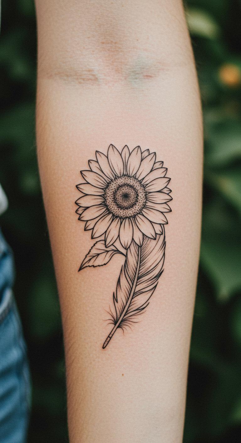 Combine a sunflower with a feather for freedom’s symbol. It’s straightforward and inspiring. Sketch both elements on paper first. Make the feather curve gently. Seek out budget artists via social media, costing less than $80. Place it on your forearm for balance. Try drawing feathers with a ruler for accuracy. Free online tools can assist. This mix adds depth without clutter. Test with body-safe markers. Enjoy the process on a budget.