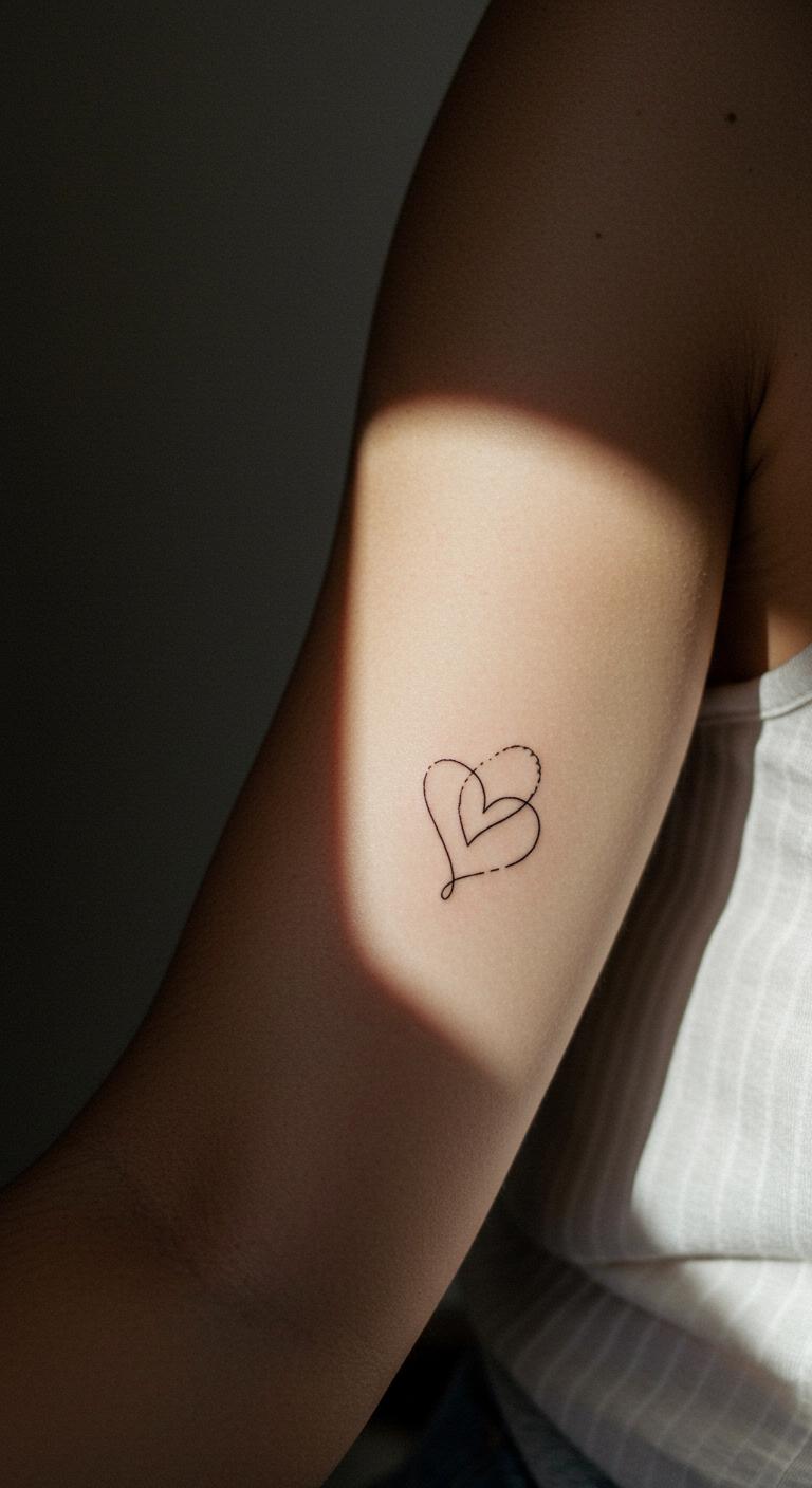 A small heart outline on your arm keeps things sweet and straightforward. Think of it as a quick nod to love or self-care without any fuss. Pick a spot like the inner forearm for easy visibility. Start by sketching a basic heart on paper to see how it looks. Use free online tools to draw your own version before visiting a shop. This saves money on changes later. Keep lines thin and clean for that effortless vibe. Go for black ink to make it pop subtly. If you’re new, choose a local artist who does simple work—they often charge less. Add a personal twist, like making it asymmetrical. Remember, smaller tattoos heal fast, so you’ll be back to normal soon. Try practicing with henna first to test the feel. It’s a budget way to preview without commitment.