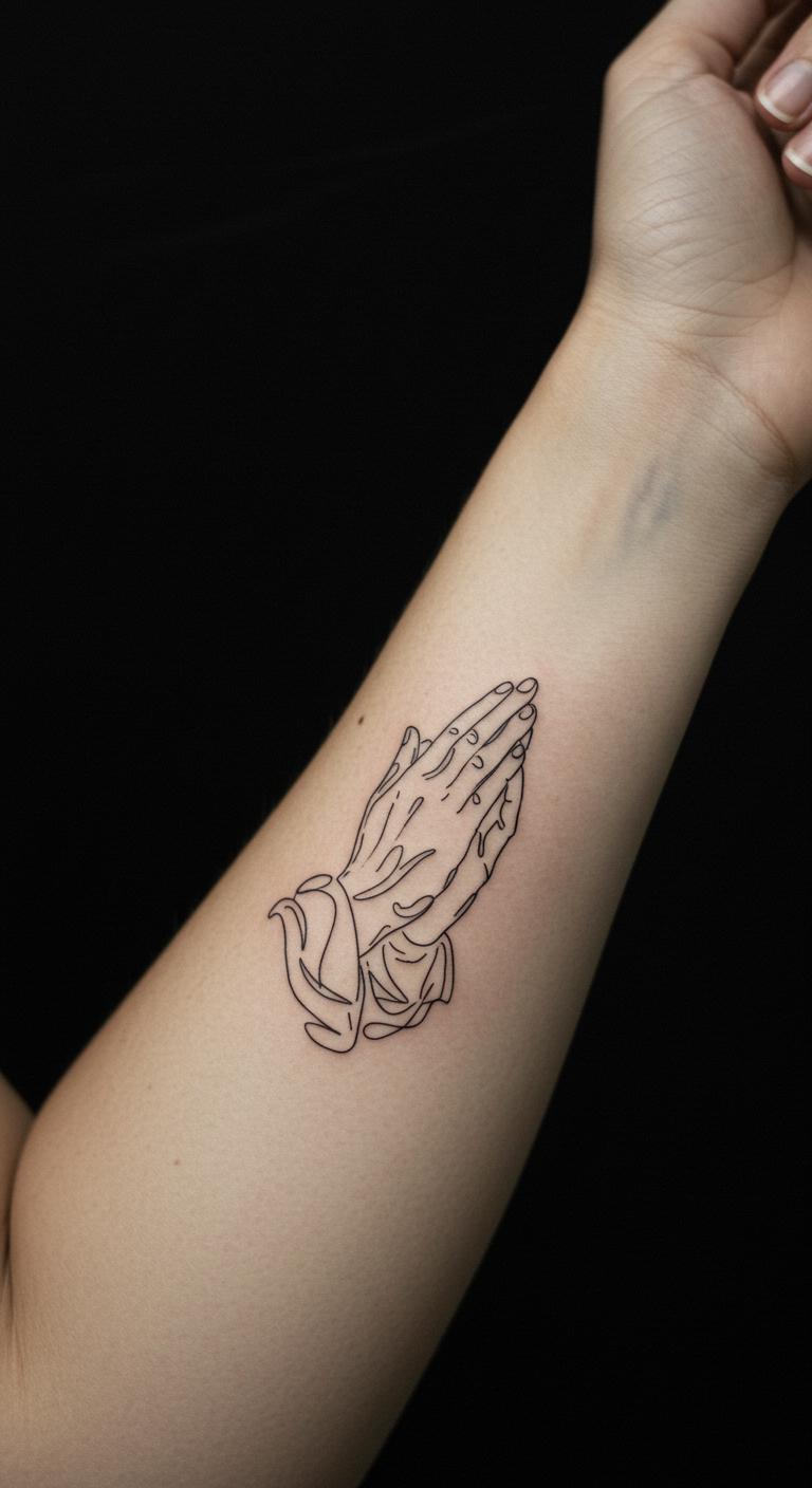 Praying hands silhouette offers quiet reflection on your arm. Use basic outlines. Place on the inner arm. Sketch hands on paper—effortless. Free online editors refine it. Black silhouettes stand out. Find affordable silhouette artists. Personalize with rays. They heal without issues. Draw with a marker first at home. Budget-friendly prep.