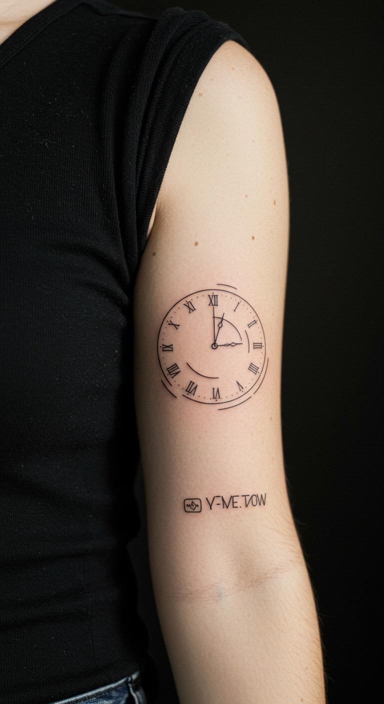 A small clock face marks time on your arm. Use few lines. Try the arm interior. Draw clocks on paper—easy. Free apps help. Black faces shine. Seek clock tattoo options. Personalize hands. Clocks remain clear. Sketch with a watch at home. Budget way.