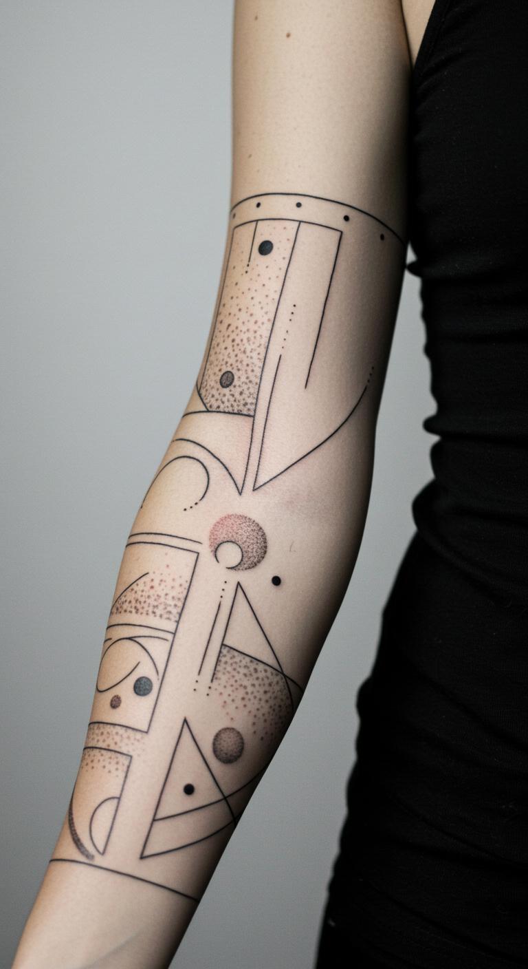 A half-sleeve of geometrics mixes shapes on your arm. Keep it balanced. Cover the arm partially. Draw shapes on paper—free. Free apps combine them. Black mixes well. Seek sleeve options. Add your pattern. Geometrics last. Layout with paper at home. Budget-friendly.