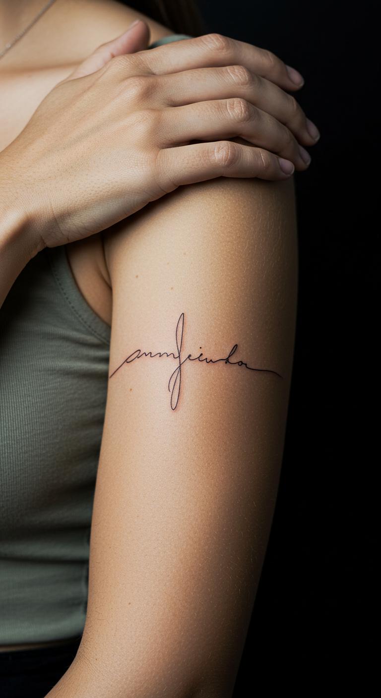A personal symbol in script tells your story on your arm. Use flowing letters. Put it on the bicep. Write symbols on paper—free. Free apps style it. Black script stands. Seek script options. Make it meaningful. Script holds. Practice writing at home. Budget start.
