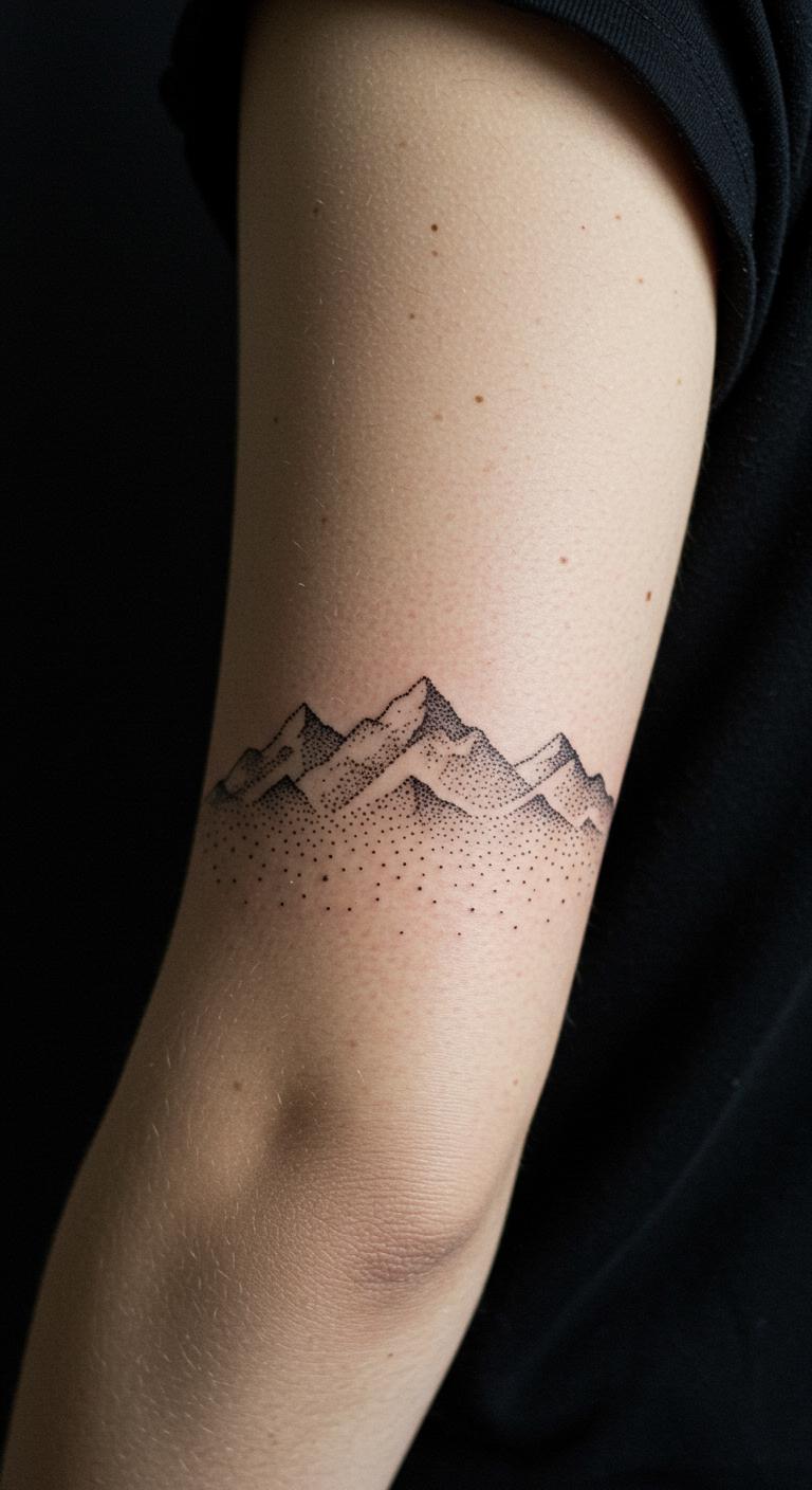 Dotwork mountains create a hilly scene with just dots on your arm. Keep it abstract and simple. Place on the outer arm for adventure vibes. Use a pen to dot mountains on paper—free and fun. Digital templates online assist at no charge. Black dots ensure a clean finish. Find deals on dotwork from local pros. Add a path of dots for personalization. They fade slowly with proper care. Test with a dot stencil at home first. This keeps things cost-effective.