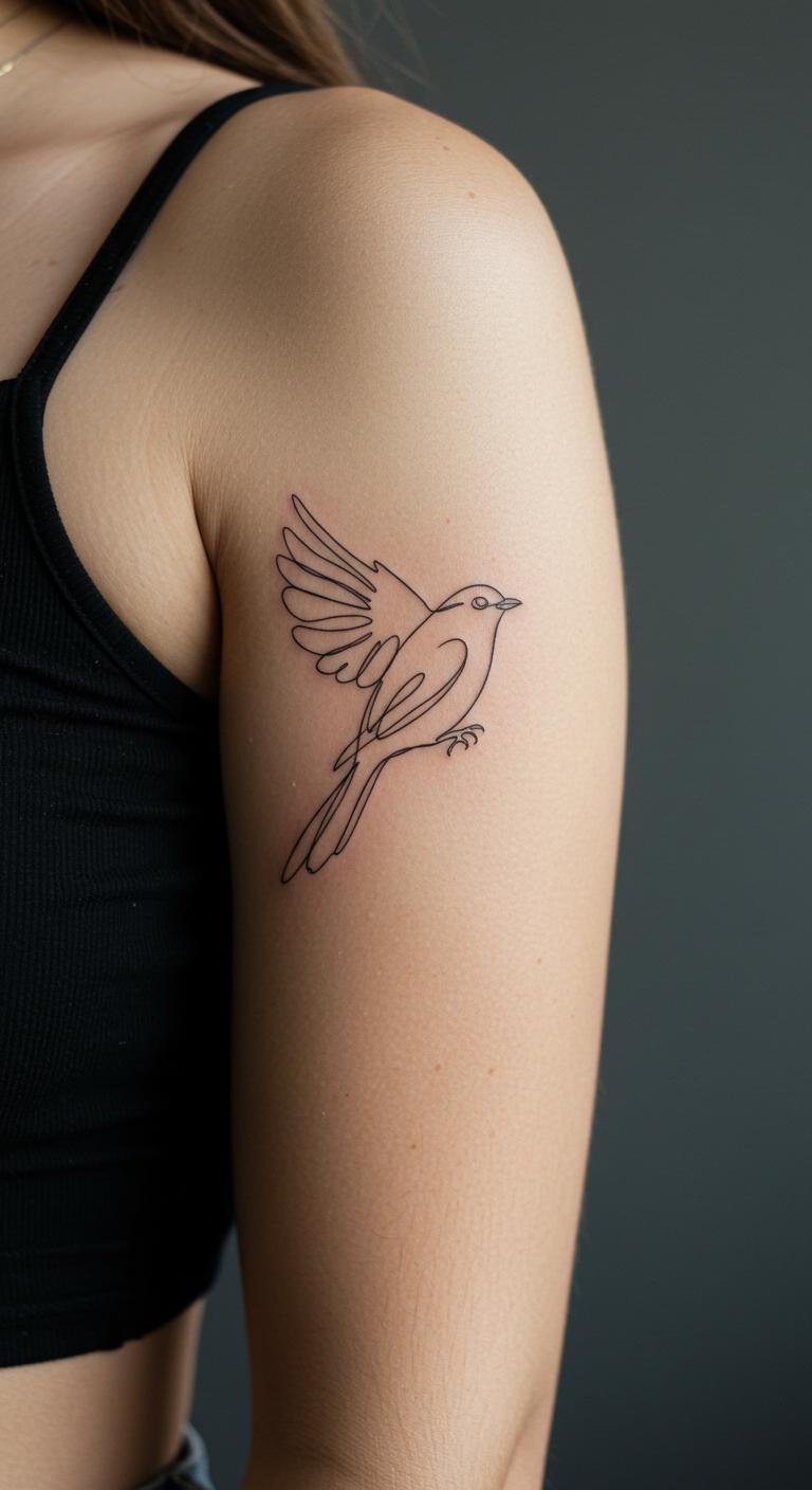 A line art bird flies free with one continuous line on your arm. Keep it light and airy. Put it on the shoulder for freedom. Draw birds in one stroke on paper—it’s free. Online drawing tools make it precise. Black lines give it life. Look for line specialists with good prices. Add feathers for a twist. Birds heal fast and stay simple. Sketch with a pen at home first. This saves on potential changes.