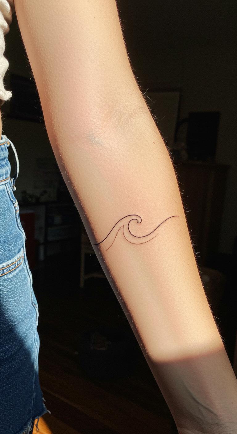 A wave tattoo captures the flow of life’s challenges. It represents adaptability and calm in storms. Go for a sleek curve on your back. This design fits anywhere with ease. Check local studios for deals under 600 rupees. Sketch waves on paper to experiment first. It helps nail the perfect wave shape. Add a small variation like layered lines for depth. DIY tip: Use washable markers to test on your arm. Snap pictures to share with an artist. Wear it as a reminder to ride out tough waves. Keep it straightforward with one fluid line. This idea suits those seeking quiet strength symbols. Focus on its representation of emotional resilience.