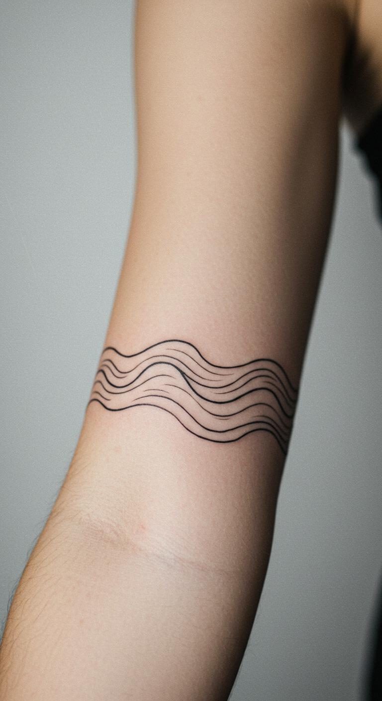 Wave lines tattoo mimic ocean rhythms. It represents constant motion. Opt for lines on your arm. Fluid design. Look for 400 rupees. Draw waves repeatedly. This patterns well. Vary the waves. DIY: String lines for tests. See the movement. Let it symbolize adaptability. Keep it rhythmic. This option flows with life.