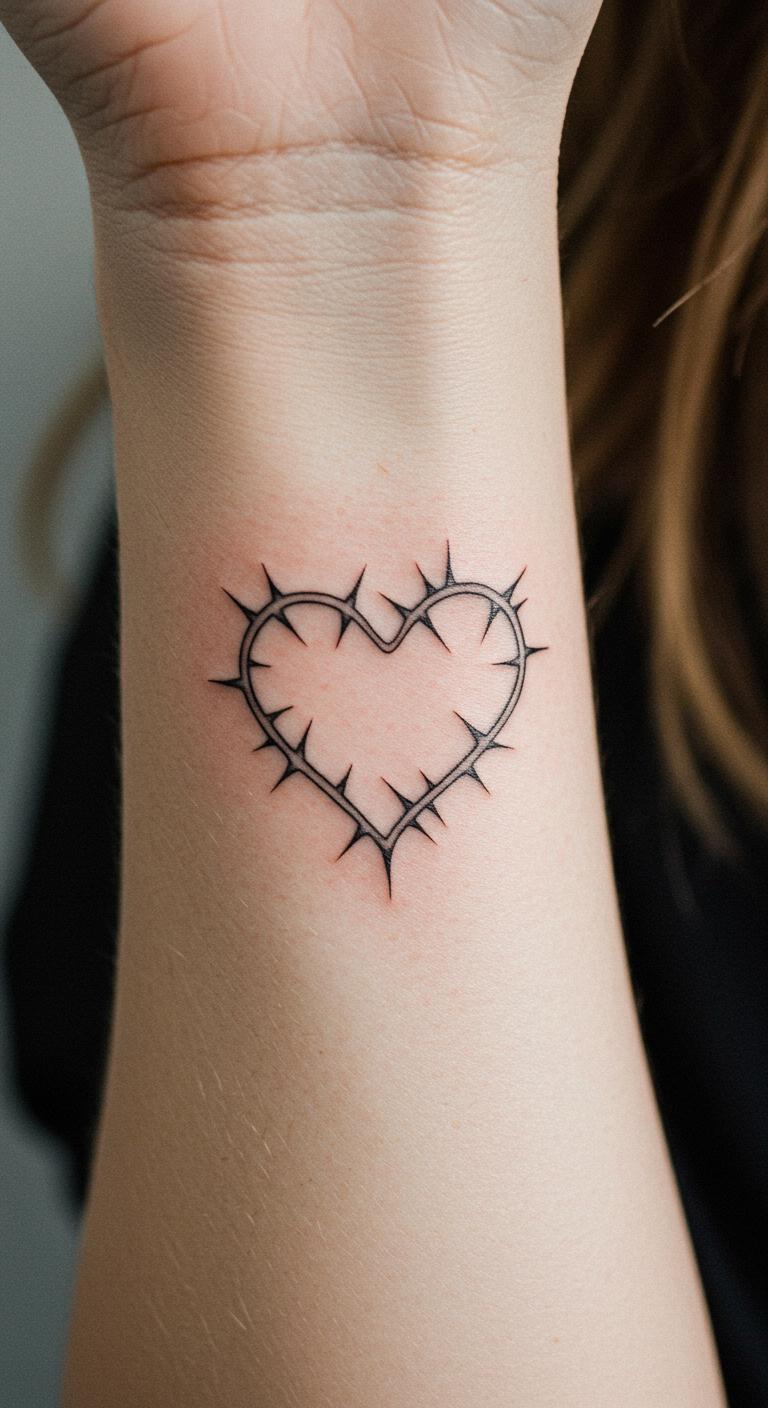 A heart with thorns tattoo shows guarded affection. It’s about protected strength. Place it on your wrist. Emotional mark. Search for 550 rupees. Sketch hearts with spikes. This balances elements. Soften the thorns. DIY: Thorn drawings trial it. Feel the edge. Use it for inner defenses. Focus on contrasts. This design protects deeply.