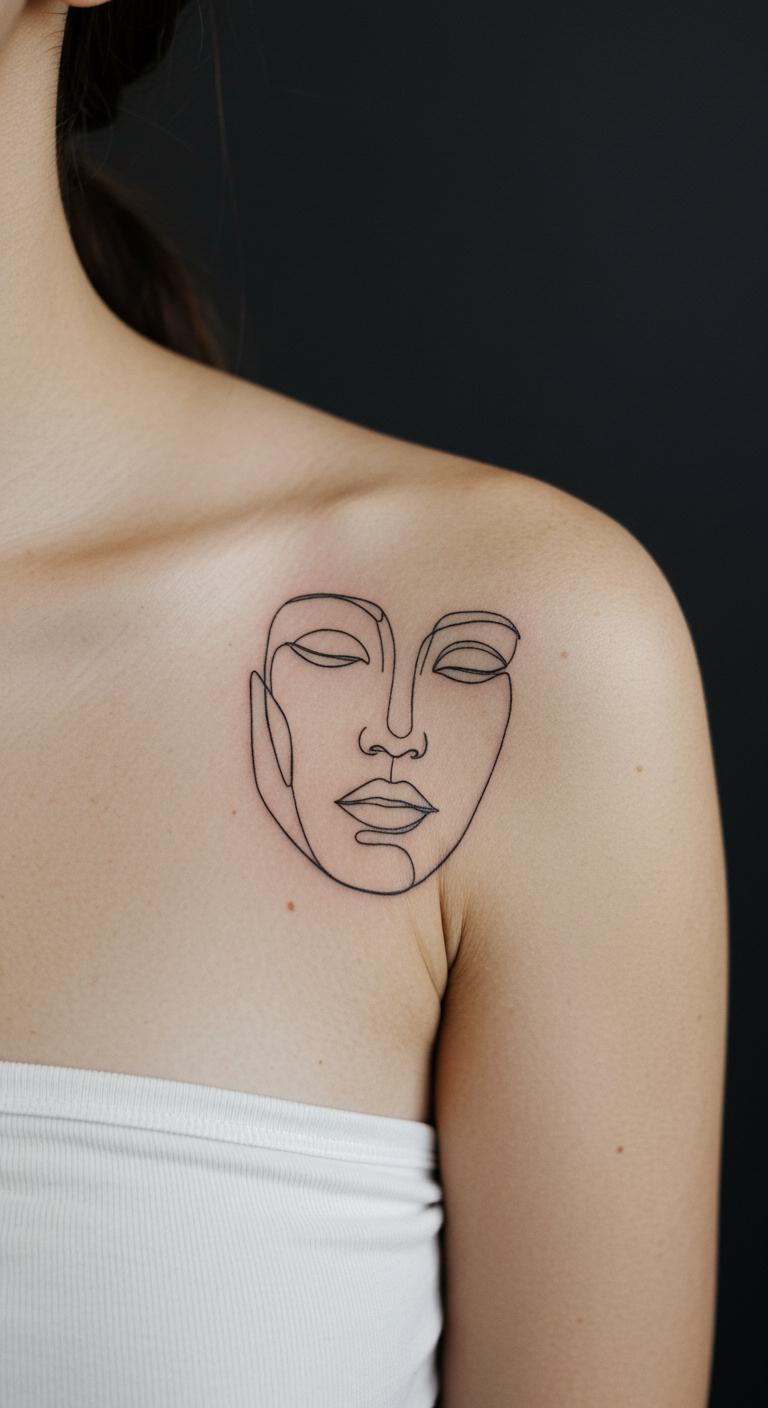 An abstract line face tattoo reflects your core. It stands for self-knowledge. Put it on your shoulder. Introspective art. Look for 600 rupees. Sketch faces abstractly. This personalizes it. Vary the features. DIY: Face outlines help. Preview expressions. Use it for inner insight. Focus on fluidity. This design mirrors strength.